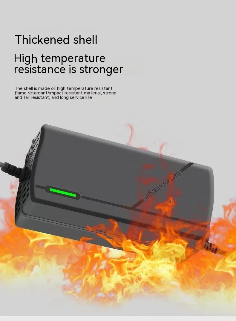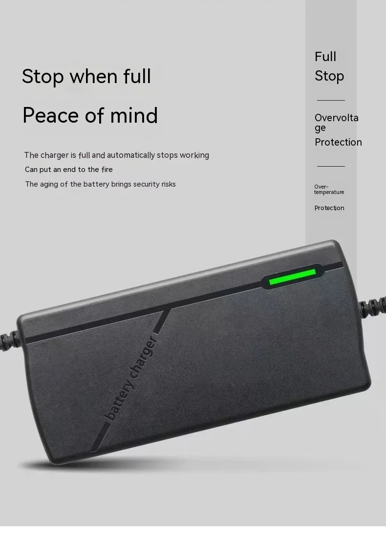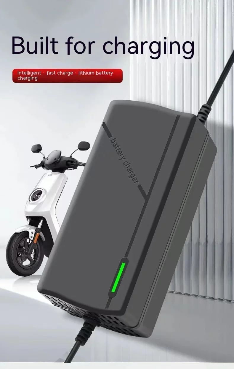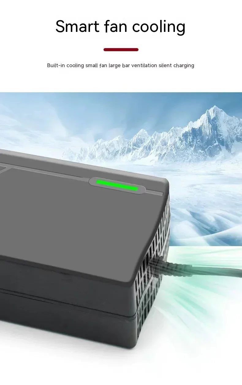 36V 48V 52V 60V 72V 2A 3A 5A charger 10S 13S 16S 20S lithium battery 42V 54.6V 58.8V 67.2V 84V 2A 3A 5A intelligent fast charging DC/Aviation/RCA/XLR/Triangular output plug EU/US/AU/UK input plug 100~240V AC, 50/60Hz