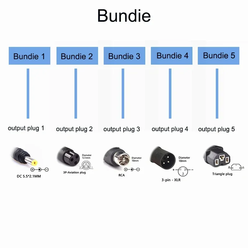 Bundle 1 is DC:5.5*2.1/2.5mm ouput plug.