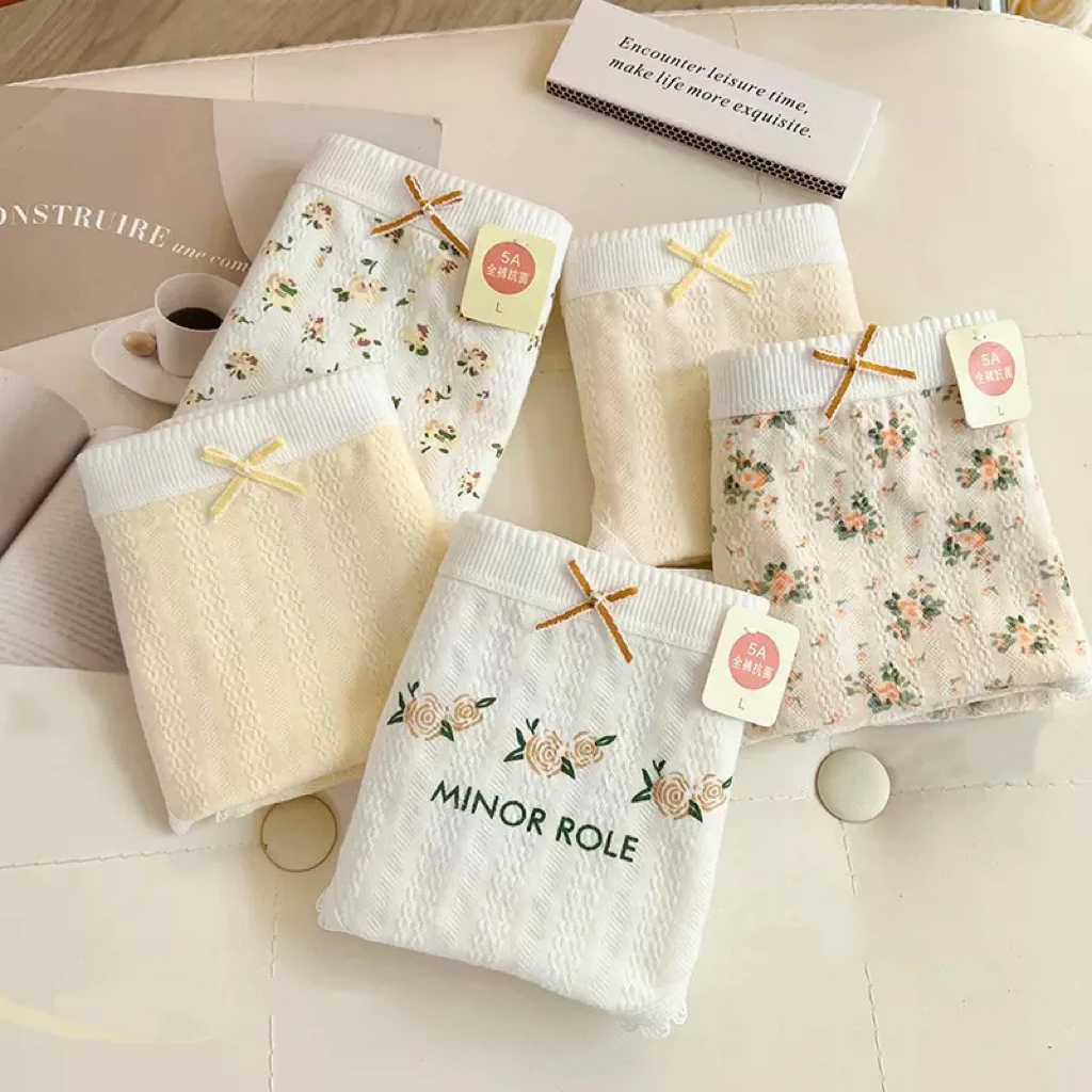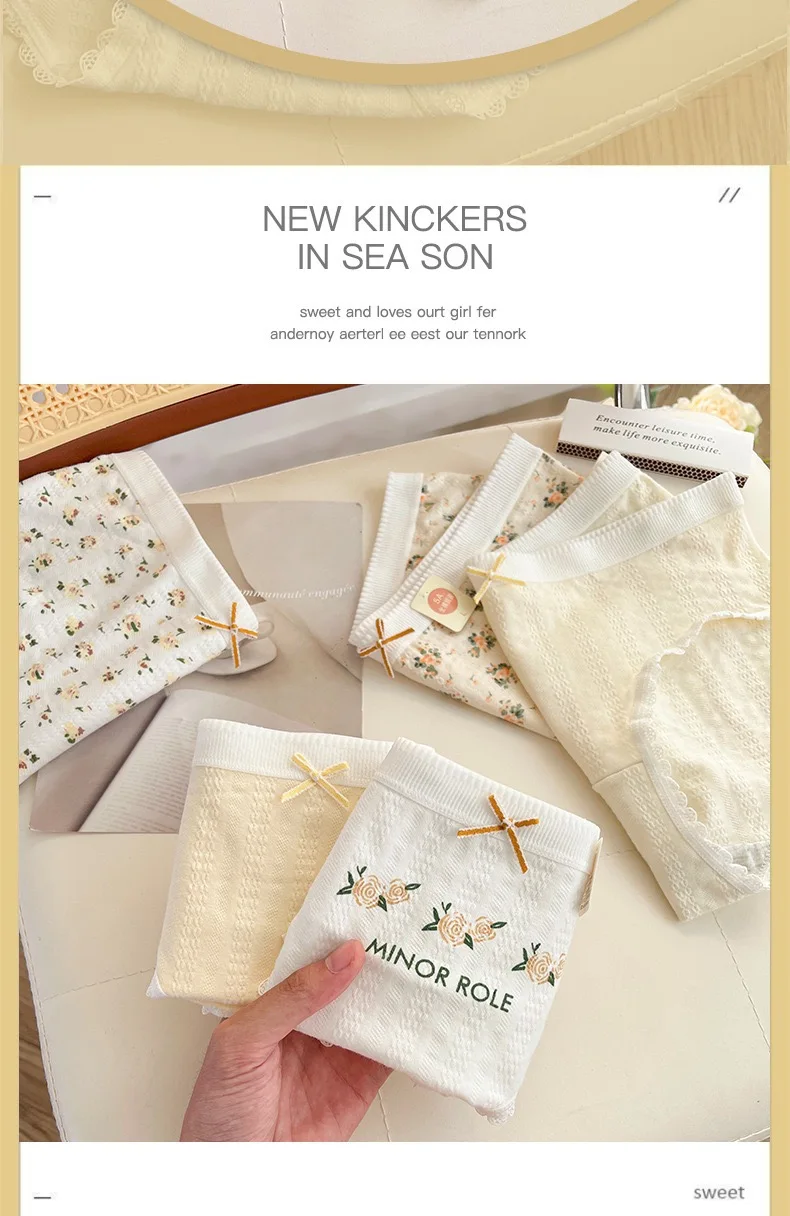 Cotton Women Flower Printe Panties Adolescent Mid Waist Underwear Girl Fashion Brief Breathable Panty Student Soft Lingerie