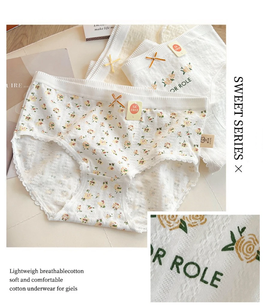 Cotton Women Flower Printe Panties: Girl Fashion Brief Breathable Panty
