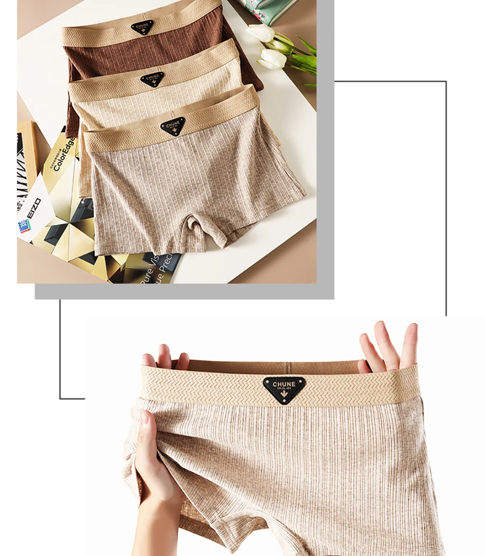 3PCS/Pack 100% Cotton Solid Striped Panties for Women Hygroscopic Breathable Lingerie Comfortable Soft Crotch Safety Underwear