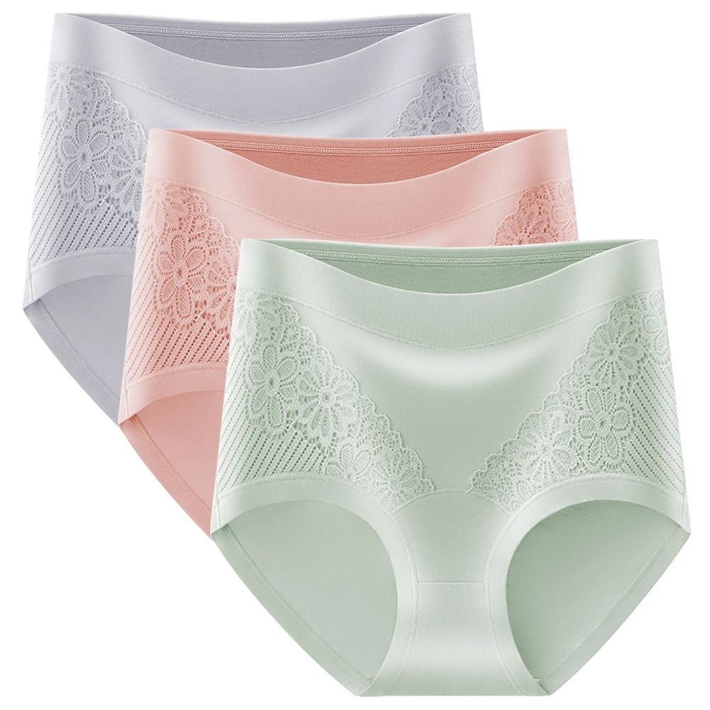 3Pcs Women's High Waisted Cotton Lace Panties Tummy Control Butt Lifting Breathable Briefs Antibacterial Comfortable Underwear
