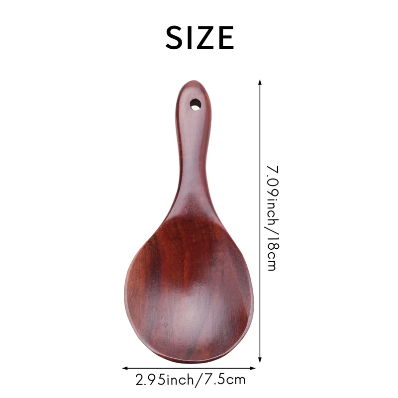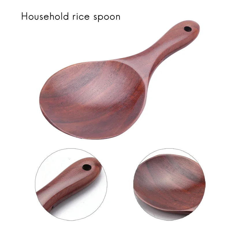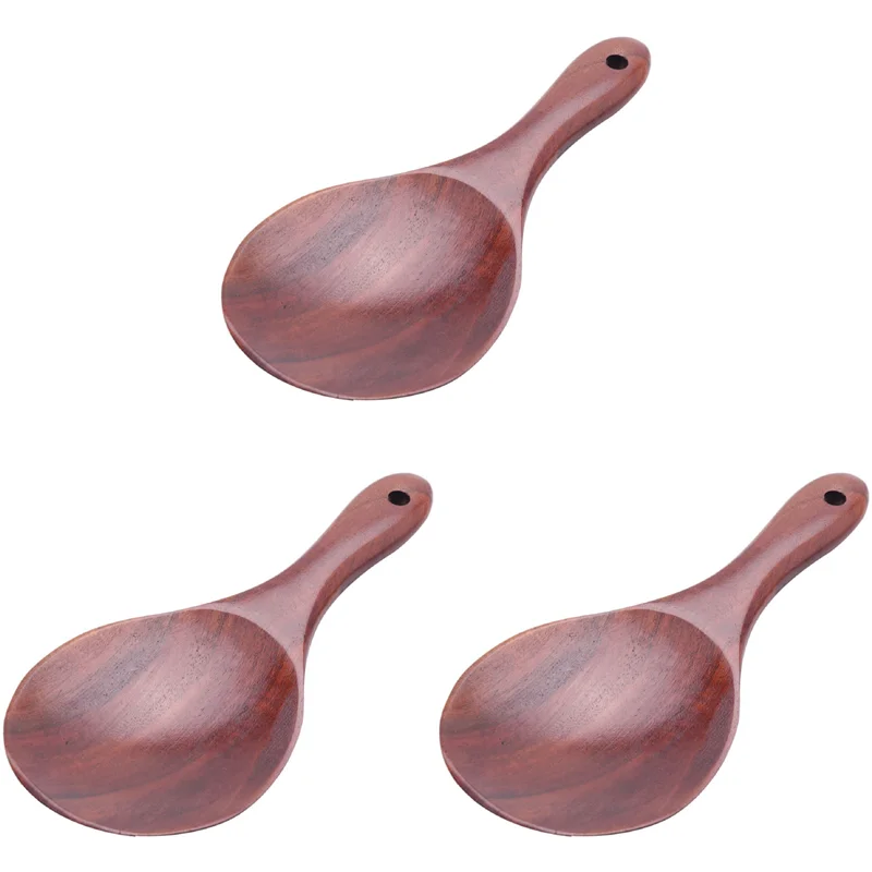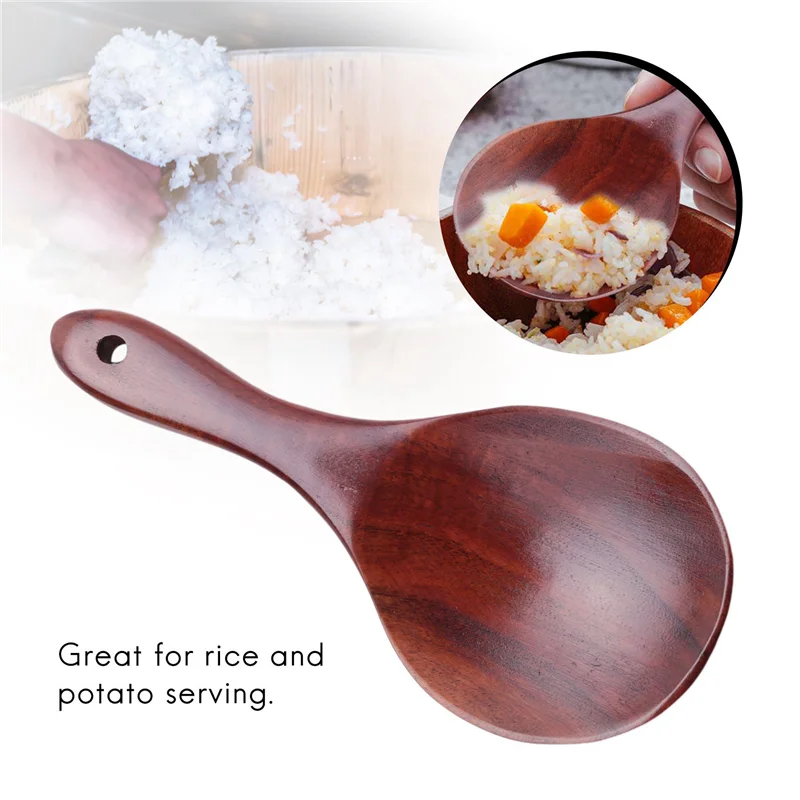 3X Teak Wood Spoon Natural Solid Wood Rice Spoon Wooden Rice Paddle Big Potato Serving Spoon Wooden Kitchen Utensils-AT30Crafted by a whole-piece solid wood with beautiful grains
