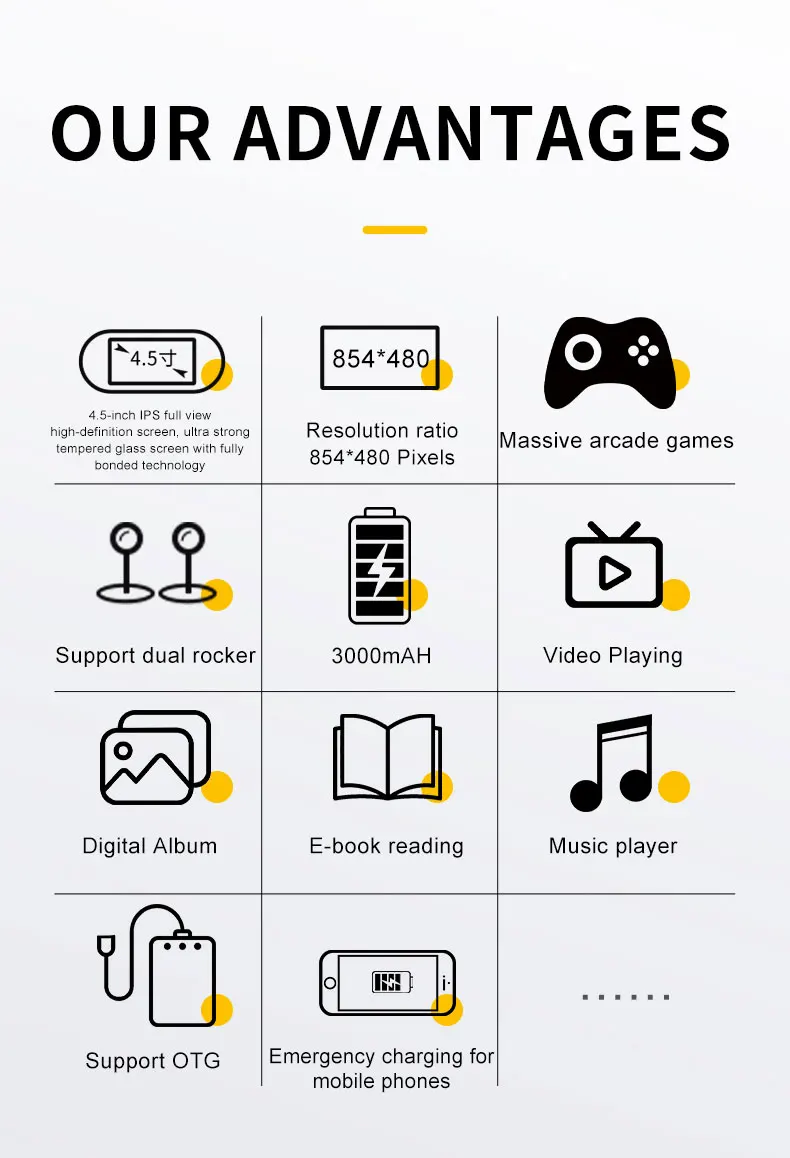 4.5” IPS full view HD screen, the product supports OTG, music, emergency charging of cell phones, video playback. One product has multiple ways to use