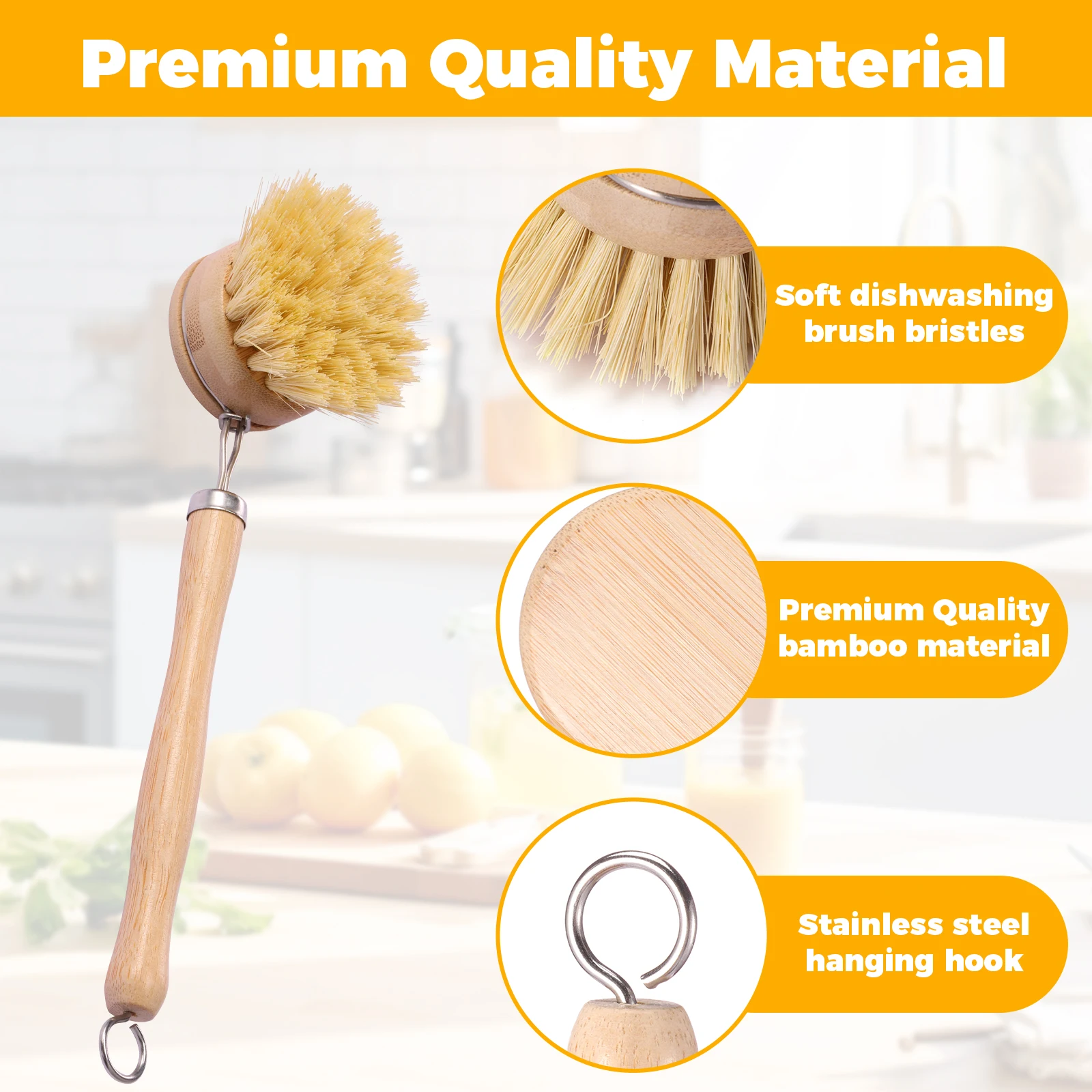 Model Number: Bamboo Dish Brush Set Pot Cleaning Brush Long Handle