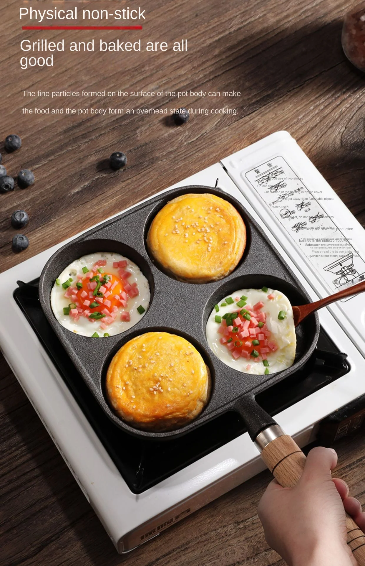 • 4hole Omelet Pan :With four holes, this omelet pan allows you to make multiple omelets at once, saving you time and effort.