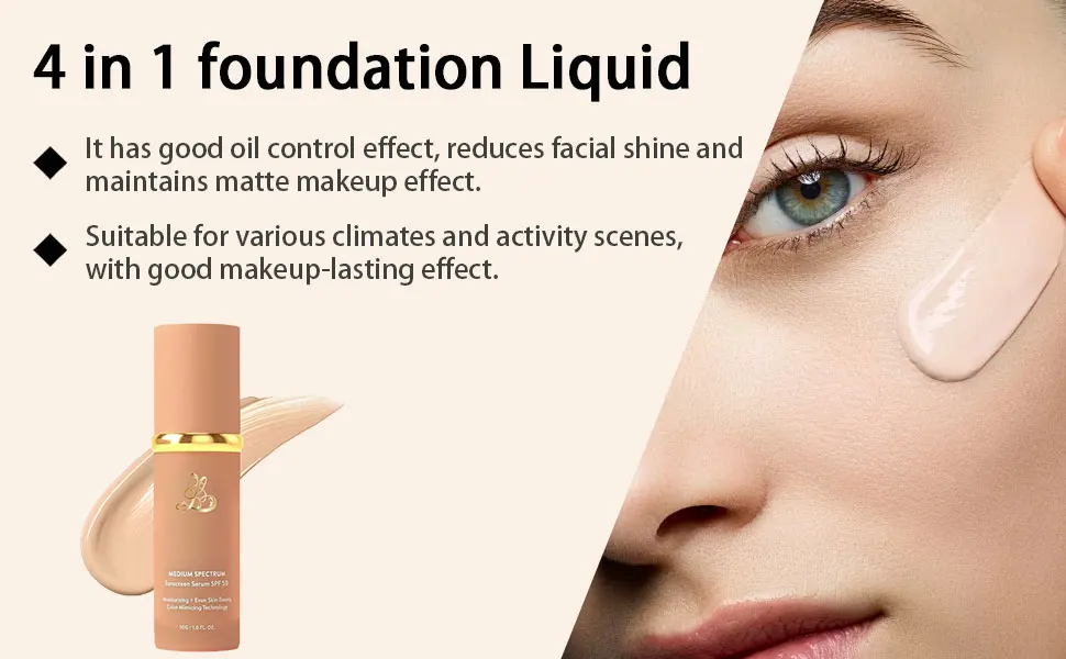 【4-IN-1 FOUNDATION】This Waterproof moisturizing light foundation Instantly mimics your skin tone and creates a uniform complexion without masking skin creating a illuminating silky finish.