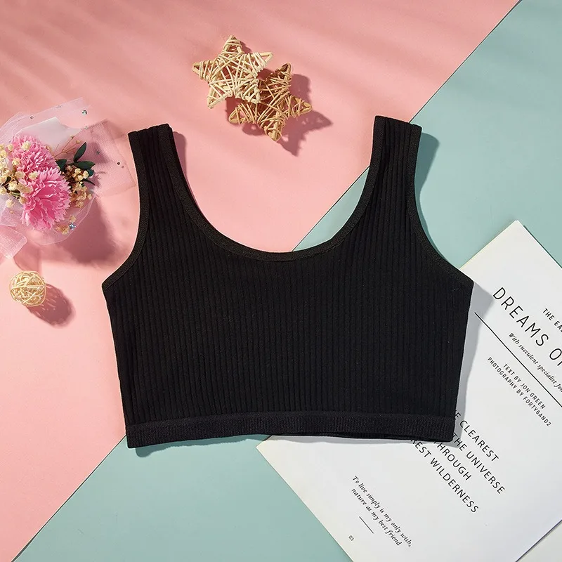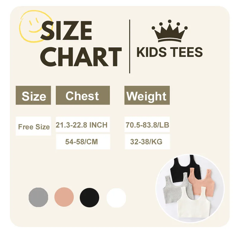 Size introduction: Normally lower circumference tlie 31cm*2. Maximum lower circumference stretch 39cm*2. Bra height 27cm(Including shoulder strap length). Suitable for girls from 8 to 16 years old.