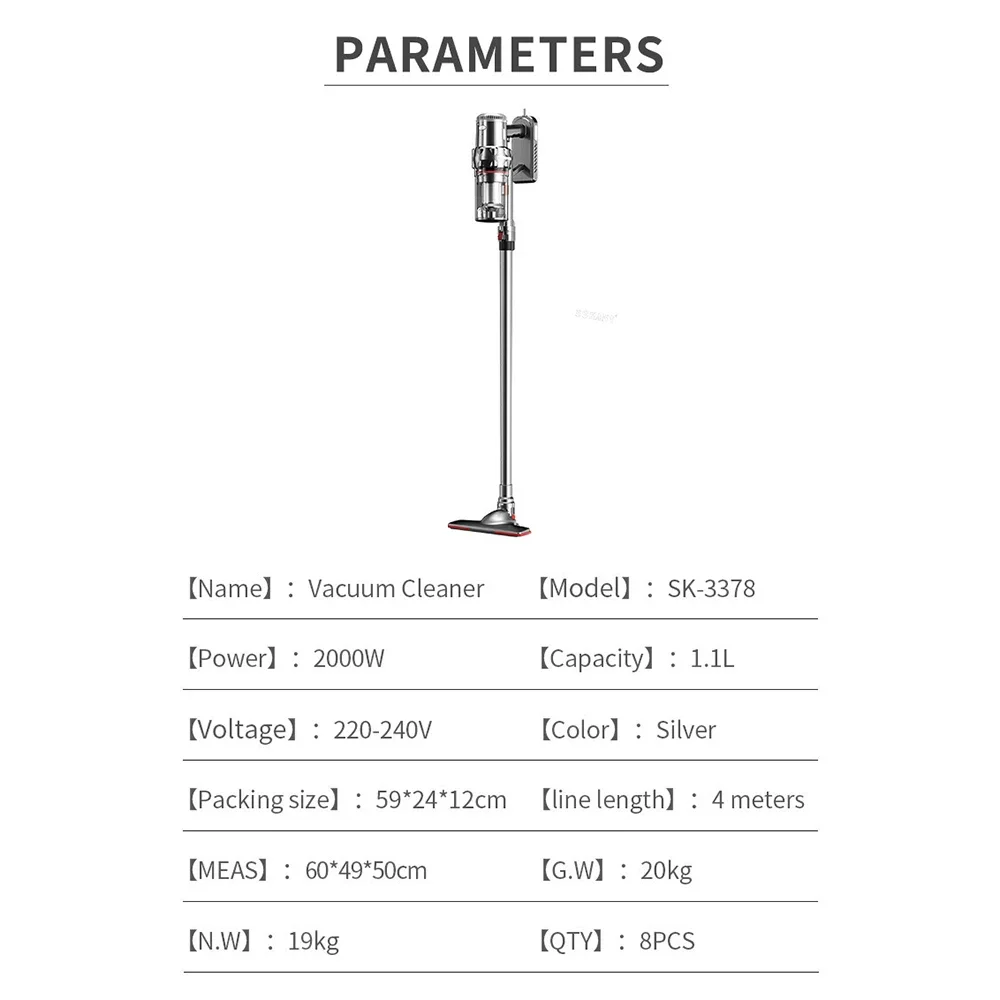 4m Long Wire 2000W High Suction Power Pet Handhold Upright Vacuum Cleaner Third Gear Adjustment Cleaning Machine Home Appliance