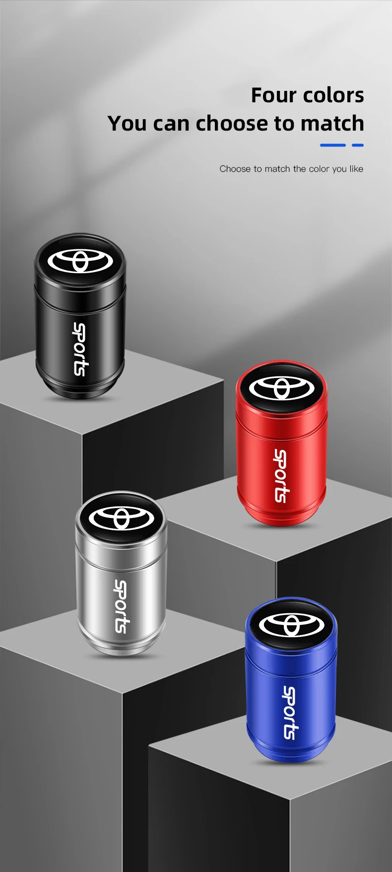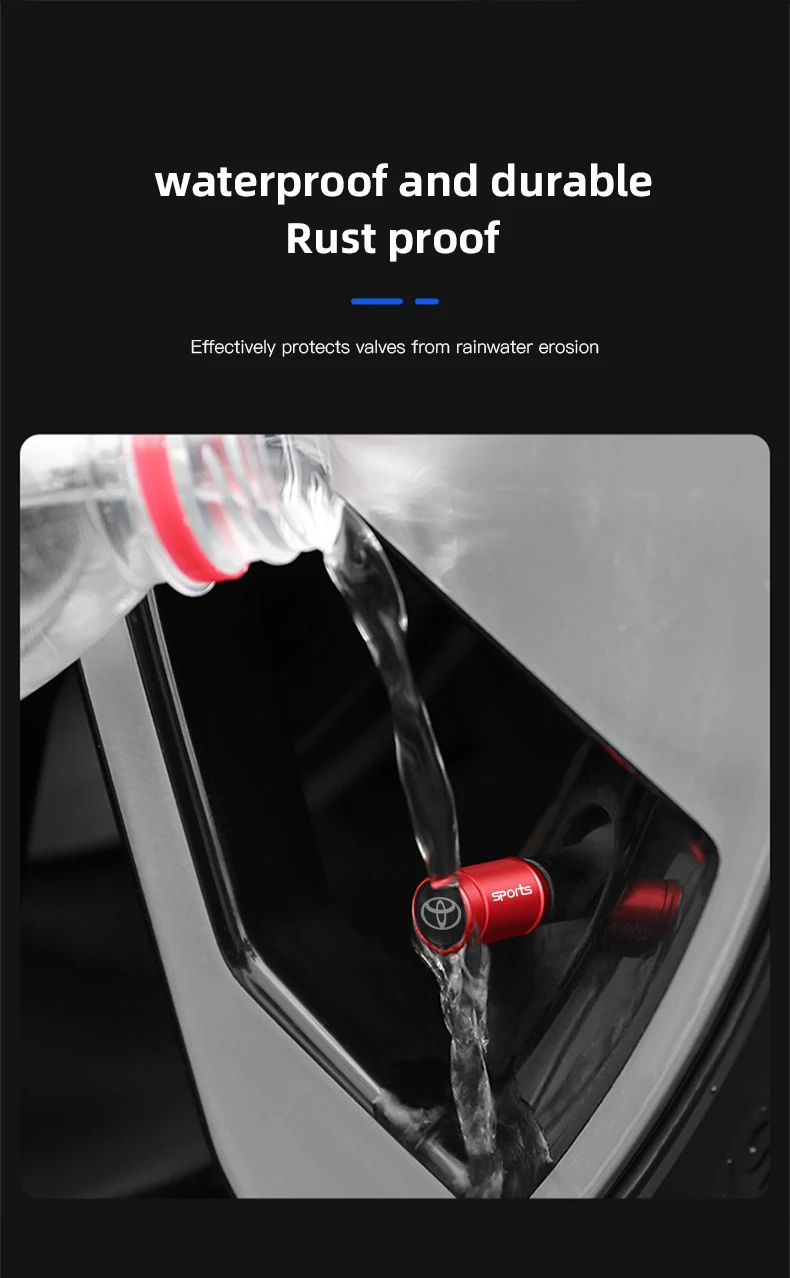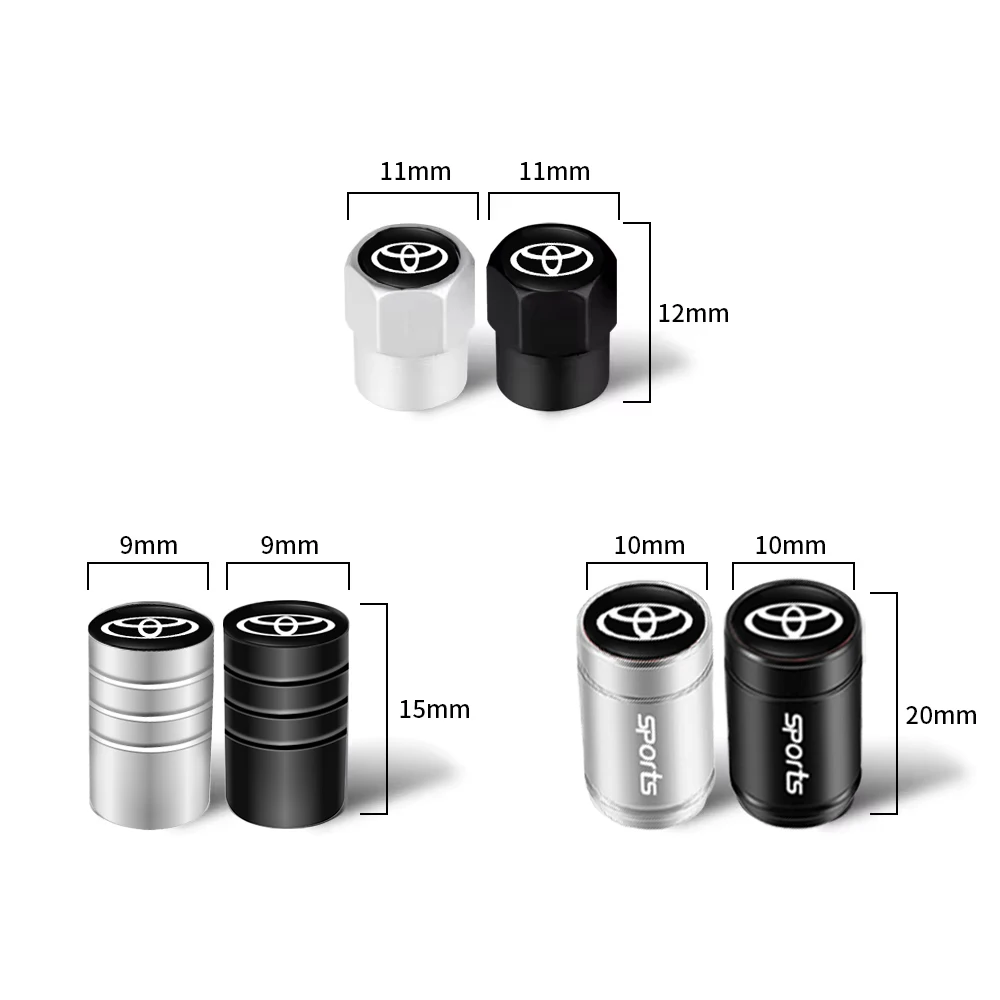 4Pcs 3D Aluminum Alloy Car Wheel Tire Air Valve Dust Caps For Toyota Gazoo Racing Corolla Yaris Chr Auris Rav4 Prius Prado Avensis Verso Sienna Avalon Camry Fortuner Highlander Mark-X Mirai Hillix Picanto Super TRD