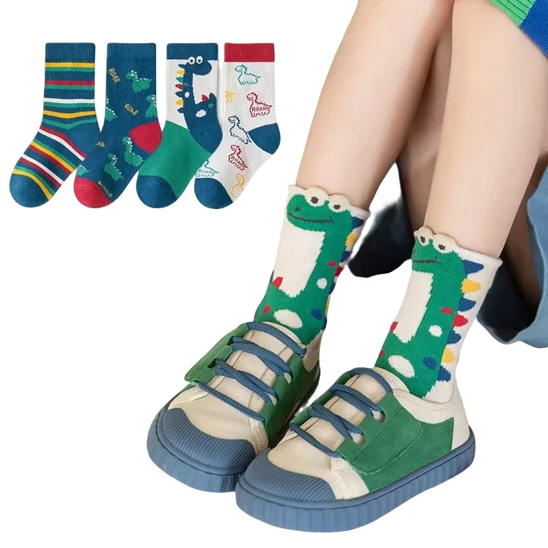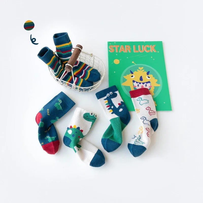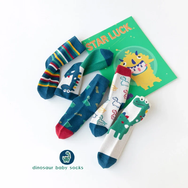 Let your little one's feet wear personality and fashion! Cartoon little dinosaur striped boys socks-soft, breathable and full of vitality!