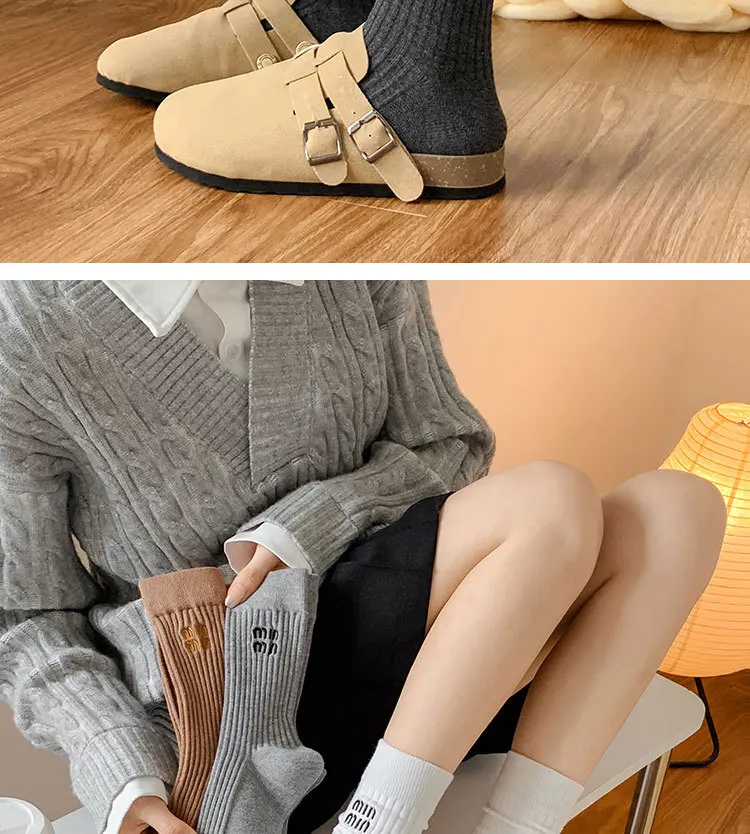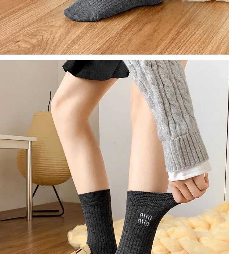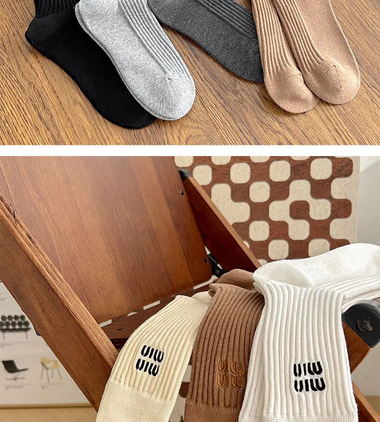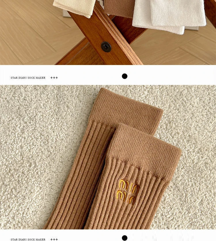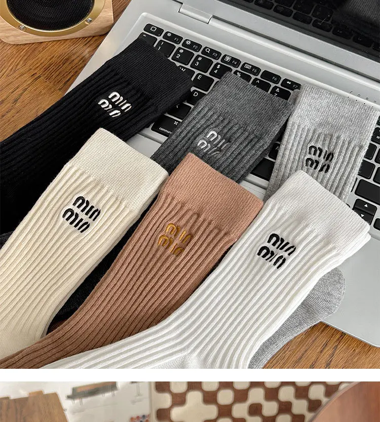 1/2 Pairs Socks Women's Winter Fashion Stockings Socks Luxury Embroidered Letter Brand Mid Tube Striped Double Needle Stacked Socks