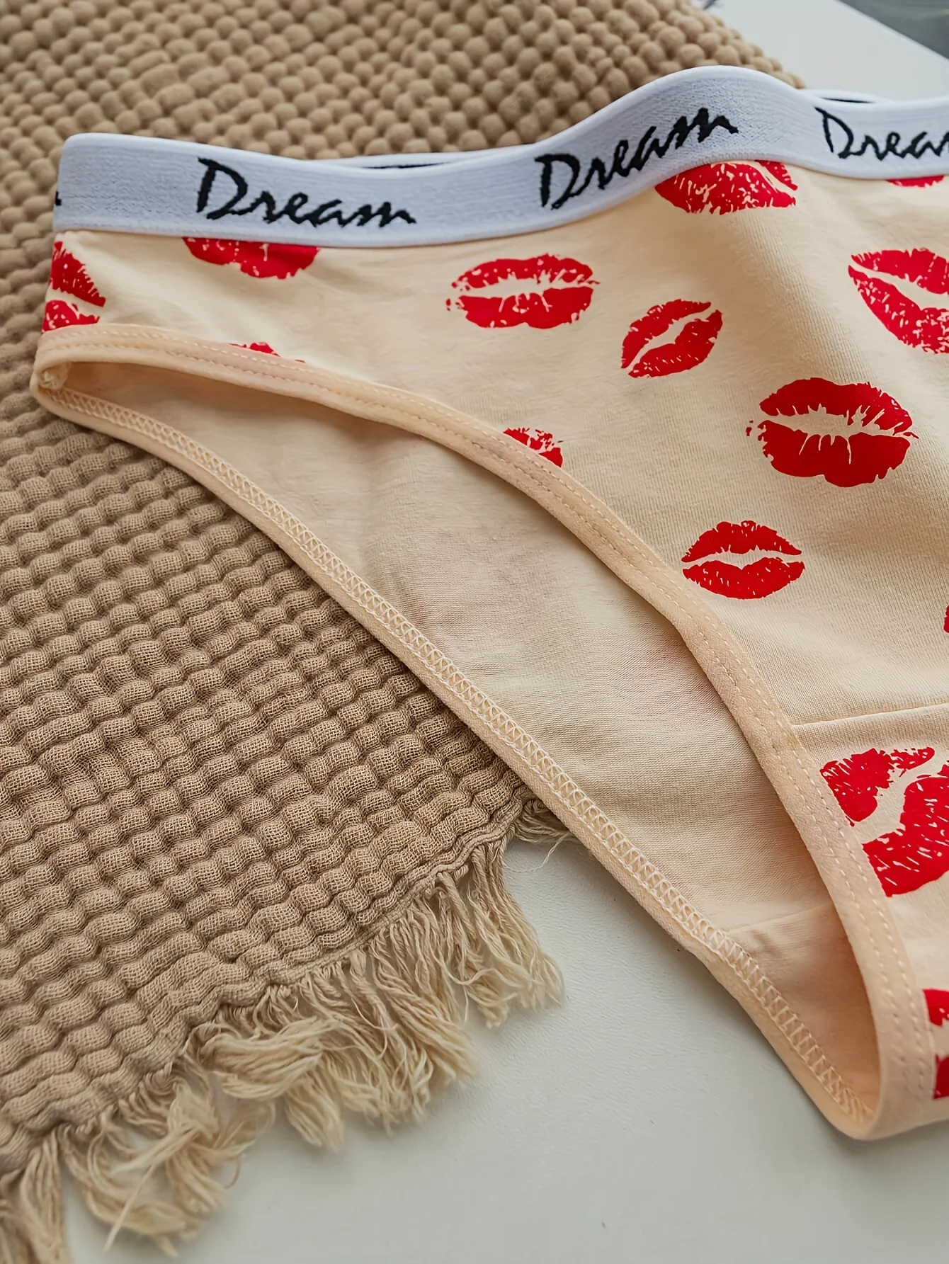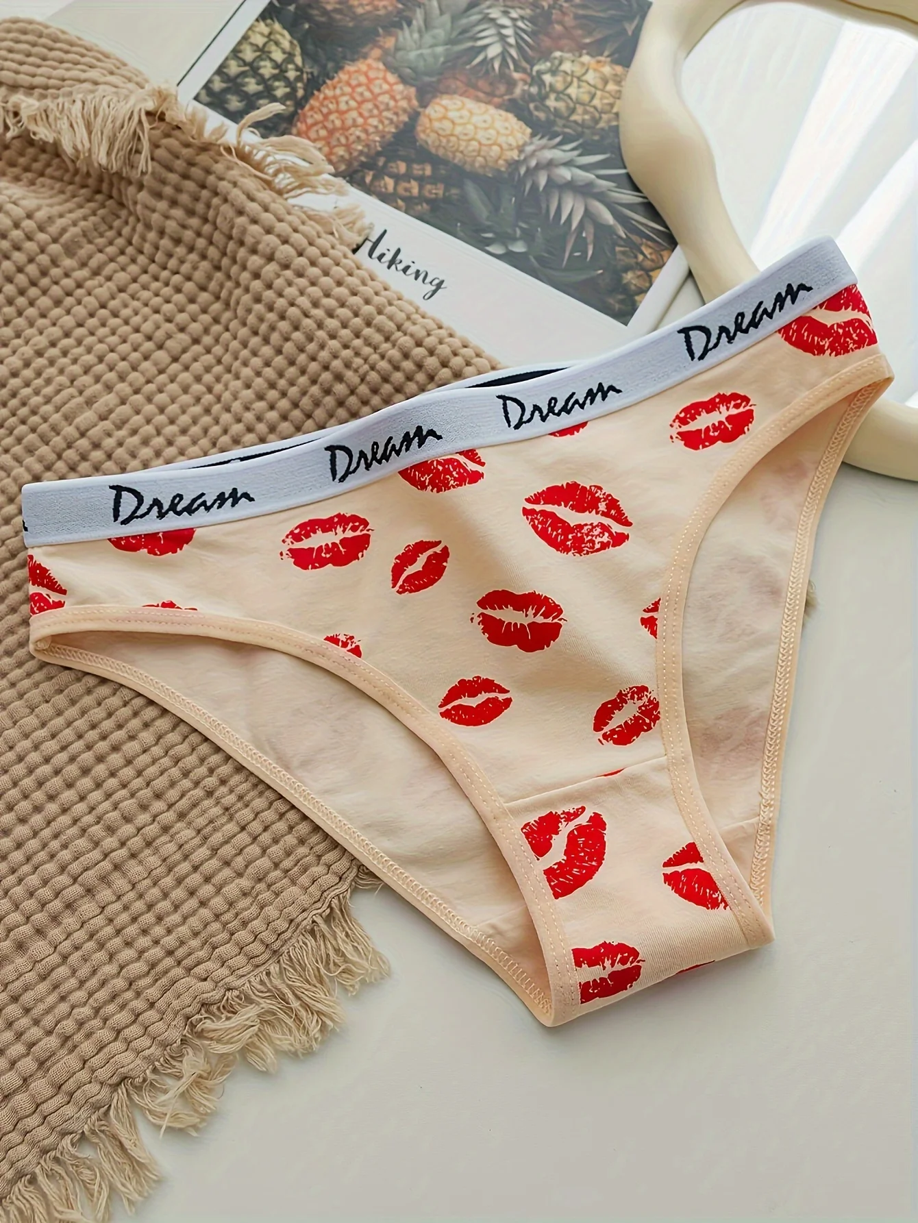 Upgrade your daily necessities with these 5 packs of super soft, 100% pure cotton women's underwear! These underpants feature fashionable lip print designs on the elastic bands, blending playful charm with minimalist aesthetics. The breathable cotton fabric ensures comfort throughout the day, while the seamless and label-free design prevents irritation. There are multiple colors to choose from. Each pair of shoes is elastic and suitable for S-XL sizes. It is very suitable for casual wear and can also add personality to a suit.
