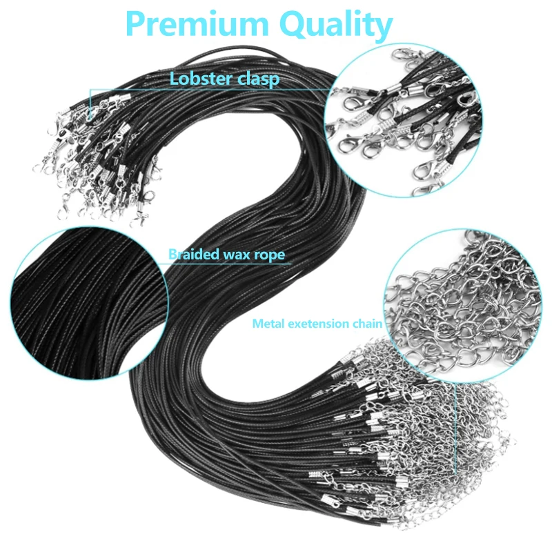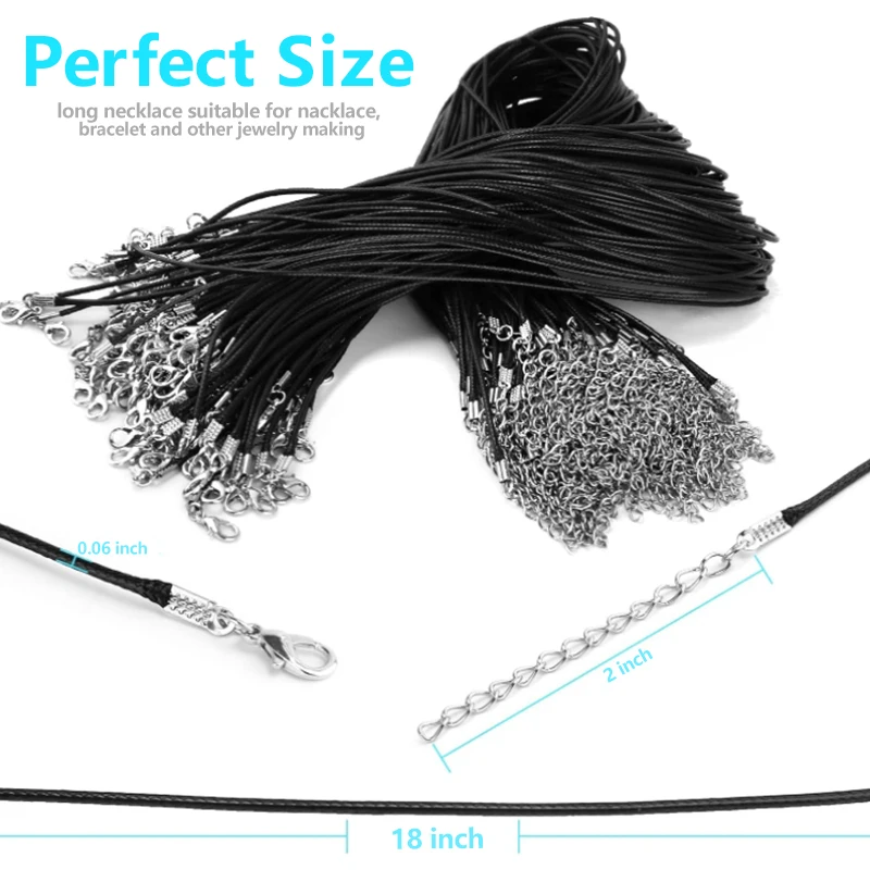 50-100 PCS LEATHER NECKLACE CORD WITH CLASPS: Our rope necklace string includes 100 pcs black necklace cord with clasp that are enough for making necklace, bracelets and other DIY jewelry projects. Great value bulk necklace chains for jewelry making supplies.