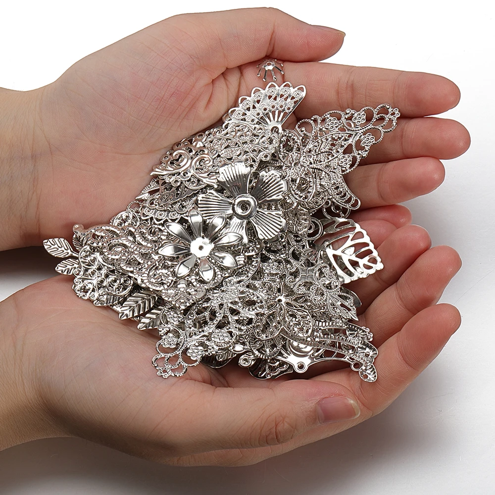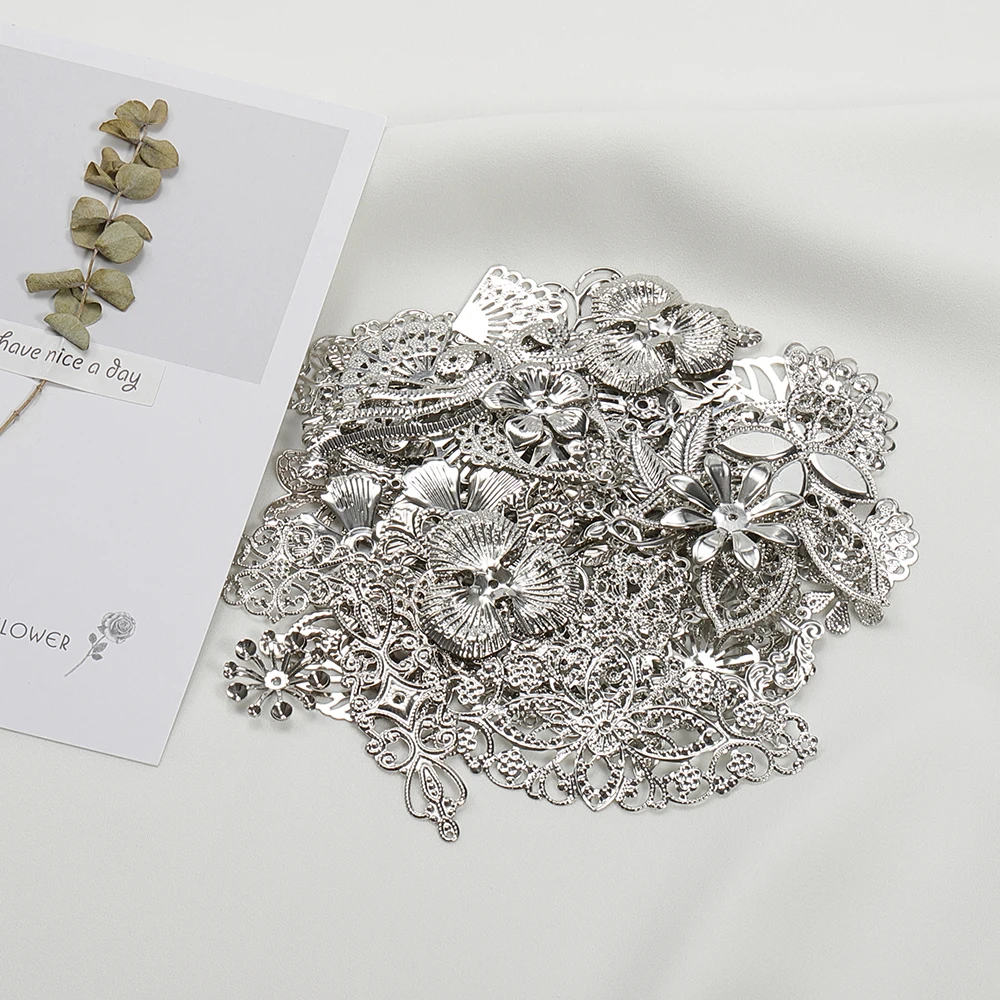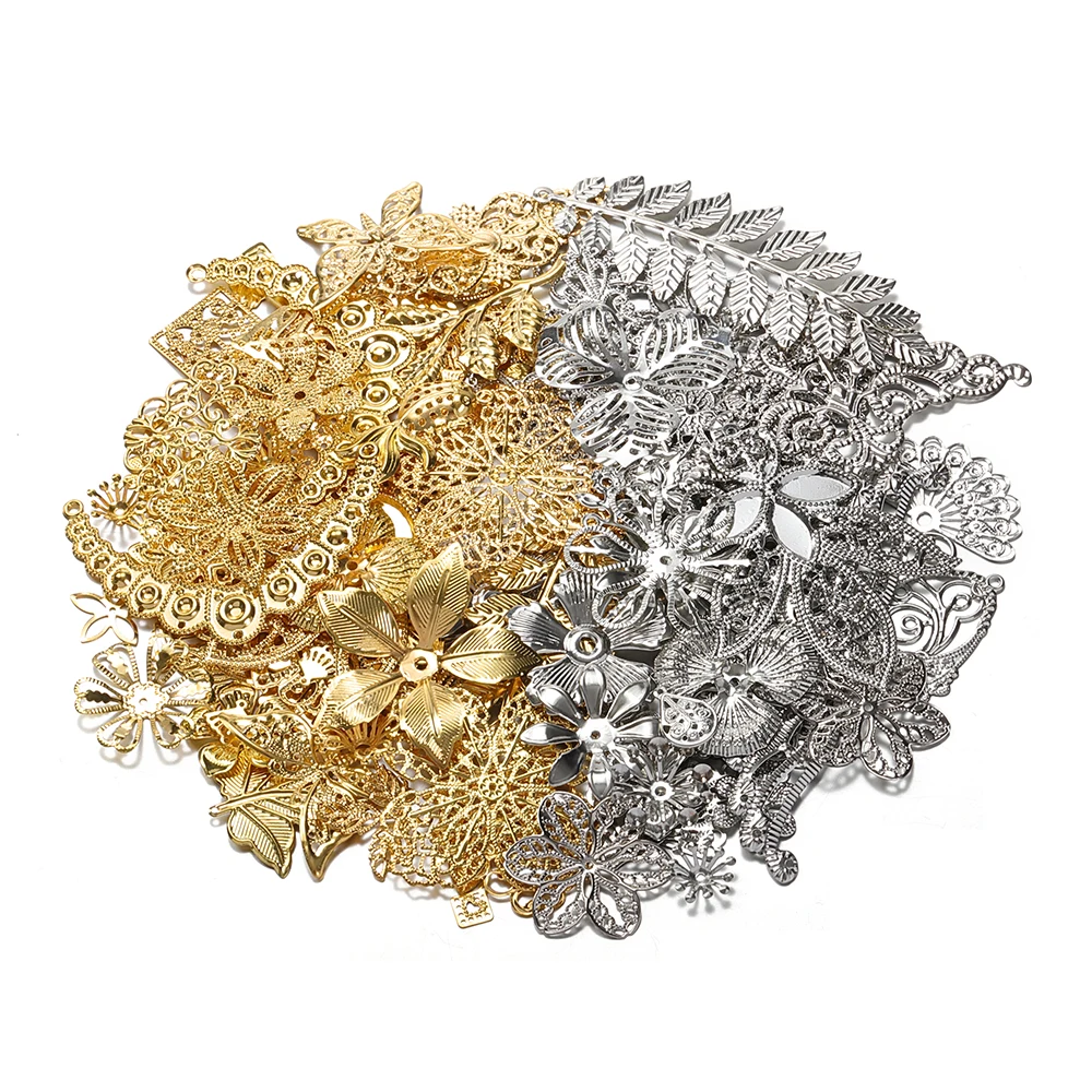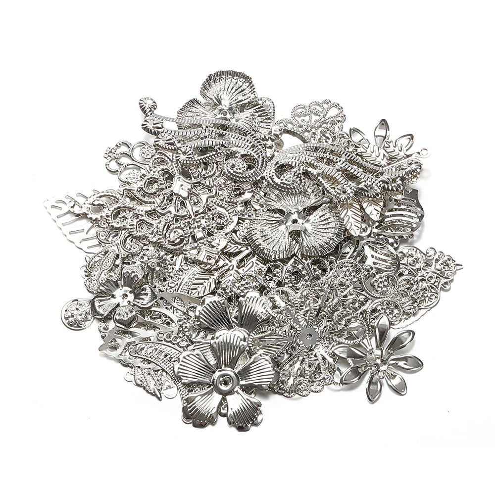 50g Pendants Filigree Flower Wraps Connector Metal Mixed Charm Bead End Cap For Embellishments Scrapbooking Jewelry DIY Findings