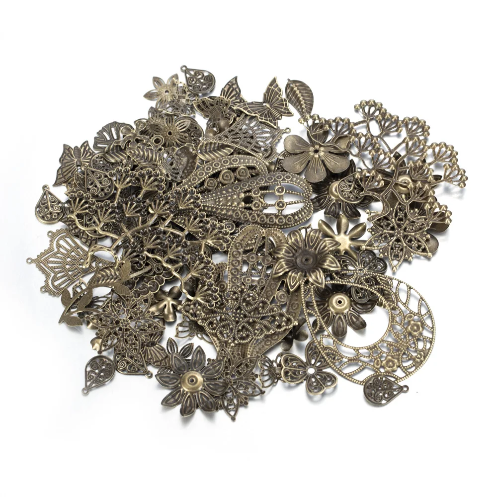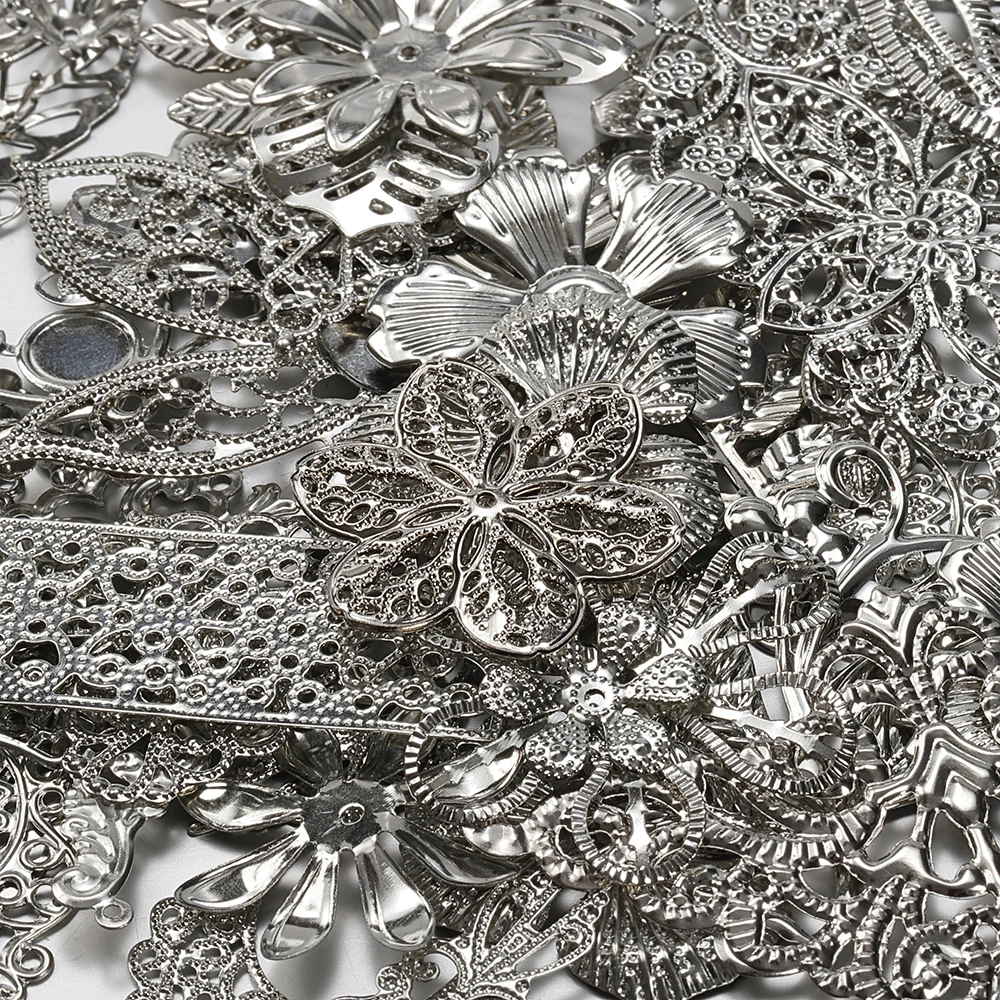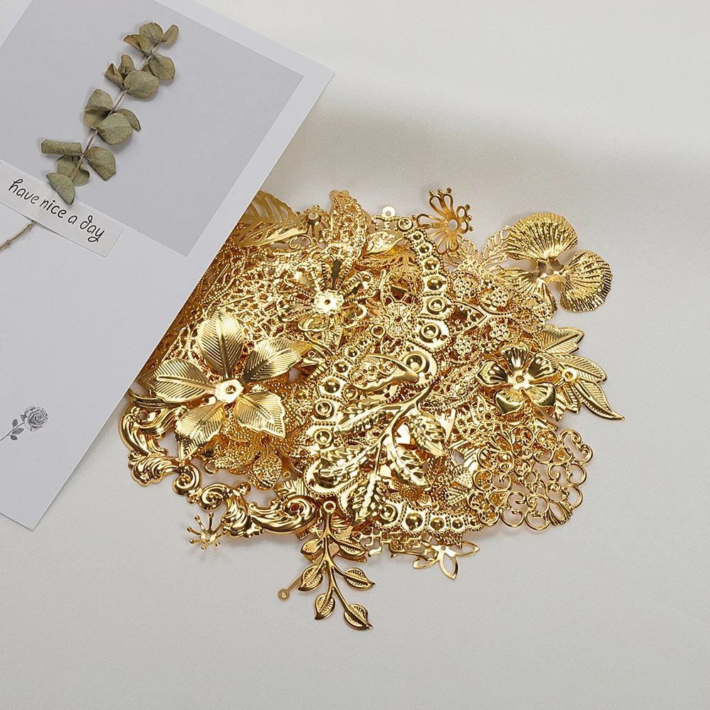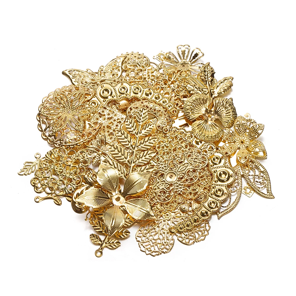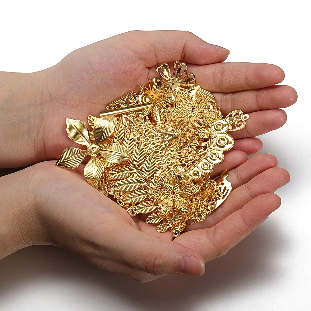 50g Pendants Filigree Flower Wraps Connector Metal Mixed Charm Bead End Cap For Embellishments Scrapbooking Jewelry DIY Findings