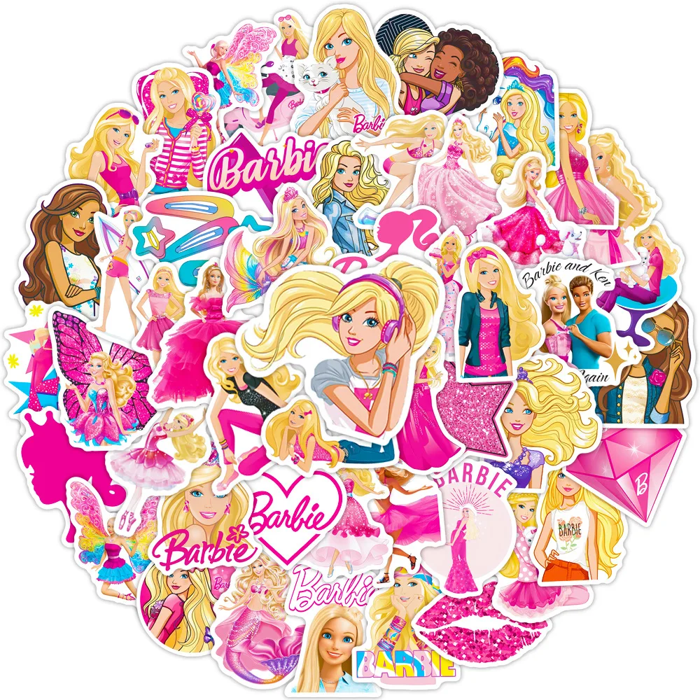 50Pcs/Set Barbie Princess Stickers Decorate Laptop Luggage Handbags Toys Waterproof Stickers DIY Toys For Kids