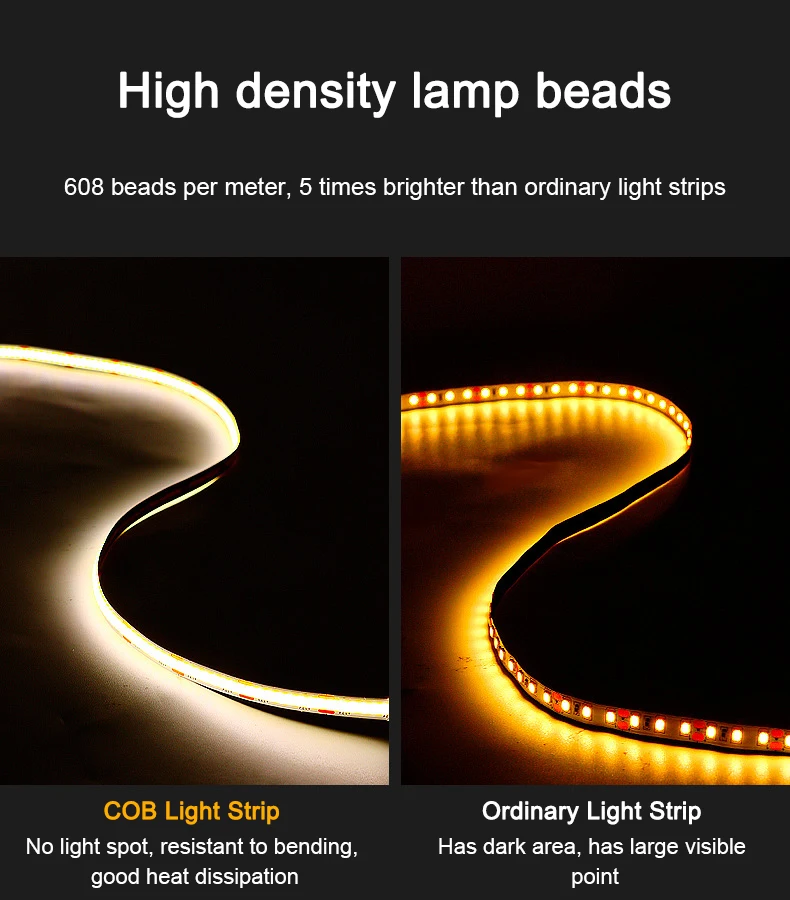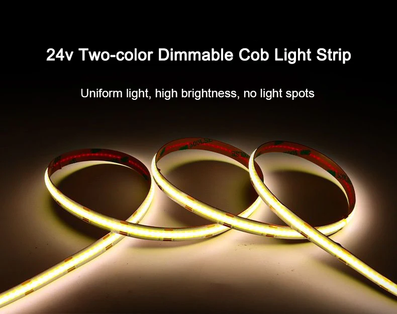 5M CCT 2700K To 6500K Cob Led Strip Dimmable 12V 24V Ra90 608leds High Brightnes