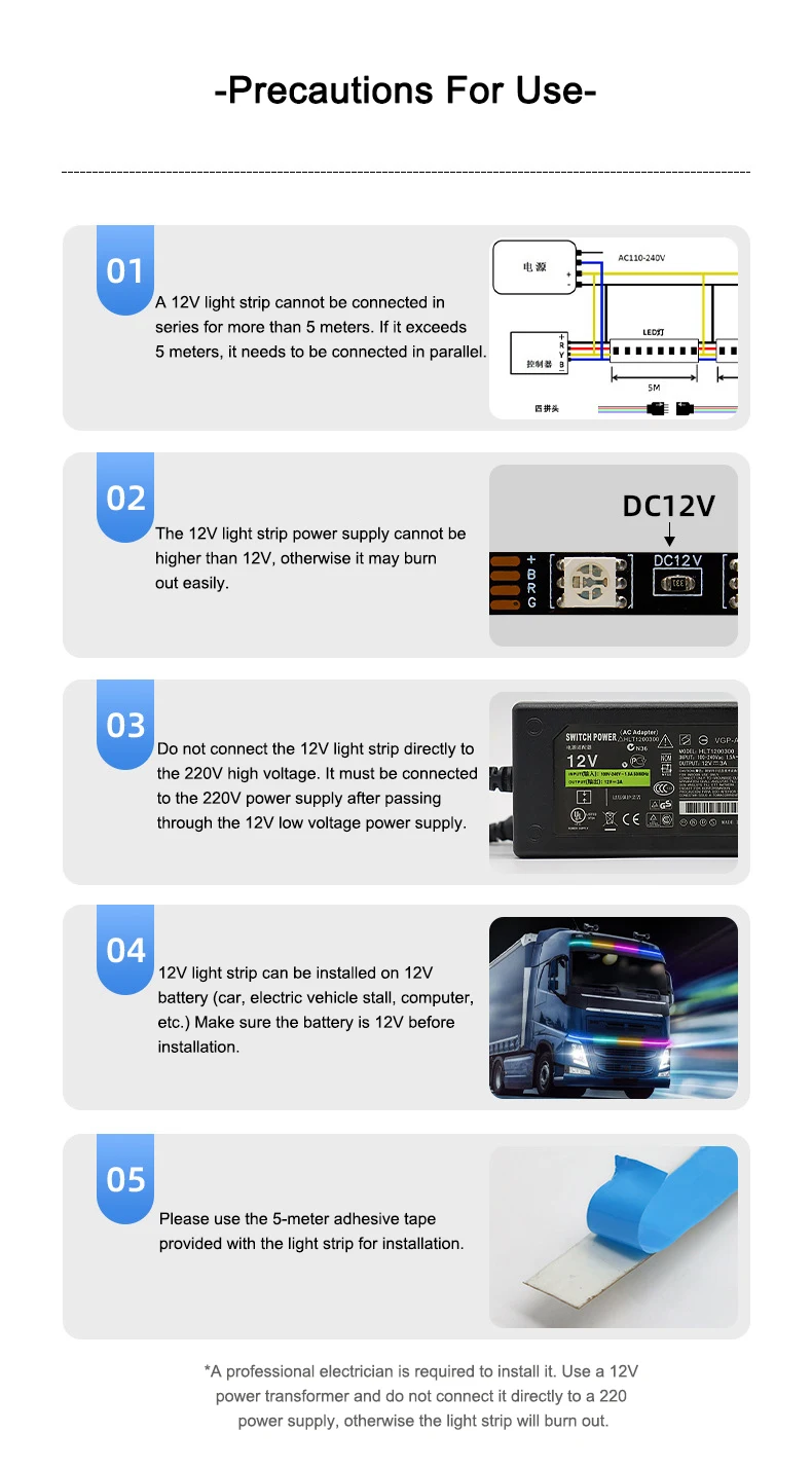 Don't forget to purchase a dedicated power supply when buying LED strips. 12V and 24V LED strips need to be paired with corresponding variable voltage power supplies!