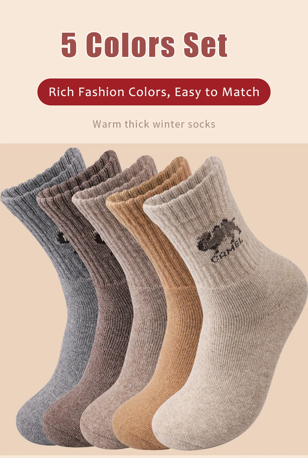 5 Pairs Winter Thick Wool Socks for MenComposition: 50% Acrylic,45% Polyester,5% WoolSize:EU 42~48Weaving Method: Knit FabricOperation Instruction: Hand washing or machine washingNote: