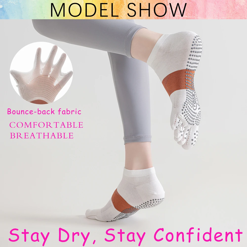 Toe Freedom, Unshakable Grip: Anatomical split-toe design with 300+ silicone dots ensures stability on sweaty mats, empowering advanced poses like Crow or Tree Pose without slipping worries.