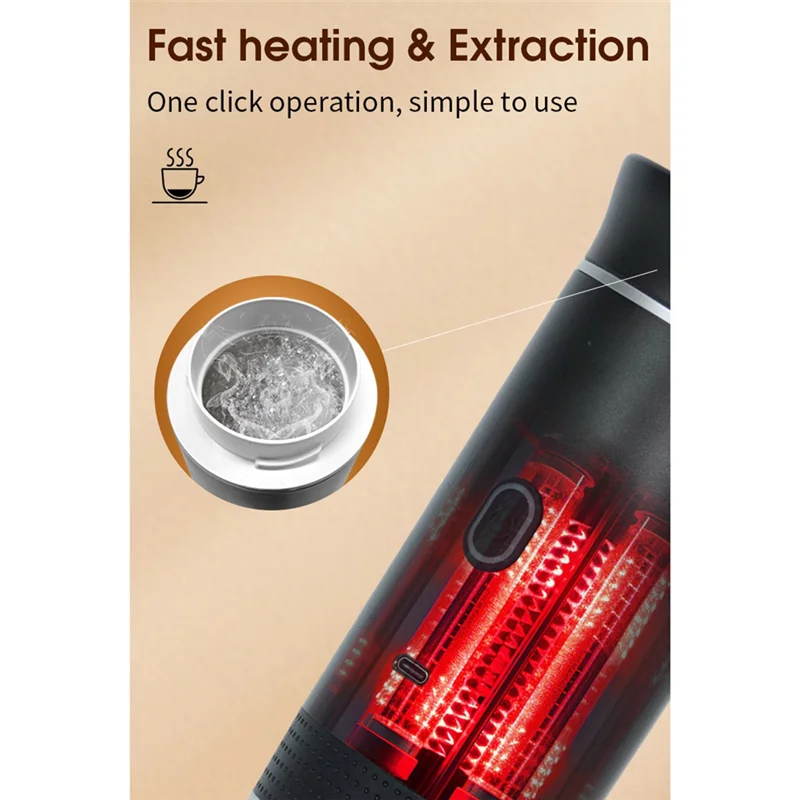 Ideal Travel Companion: Our portable coffee maker is not only lightweight and compact but also rechargeable, allowing you to enjoy fresh coffee anywhere. It's perfect for travel, business trips, and outdoor activities, ensuring you never have to compromise on the quality of your coffee while on the go.