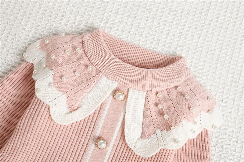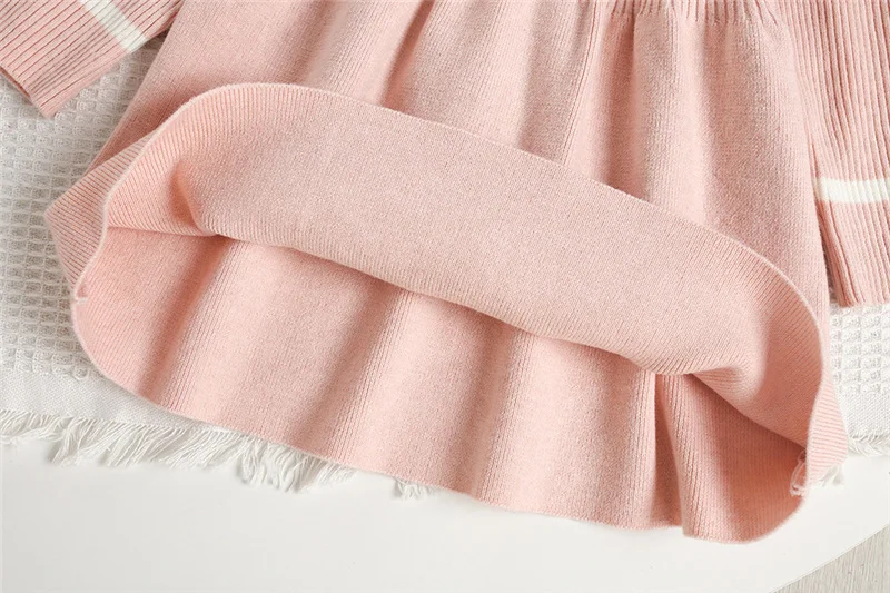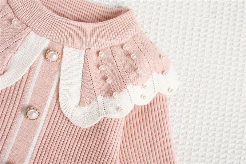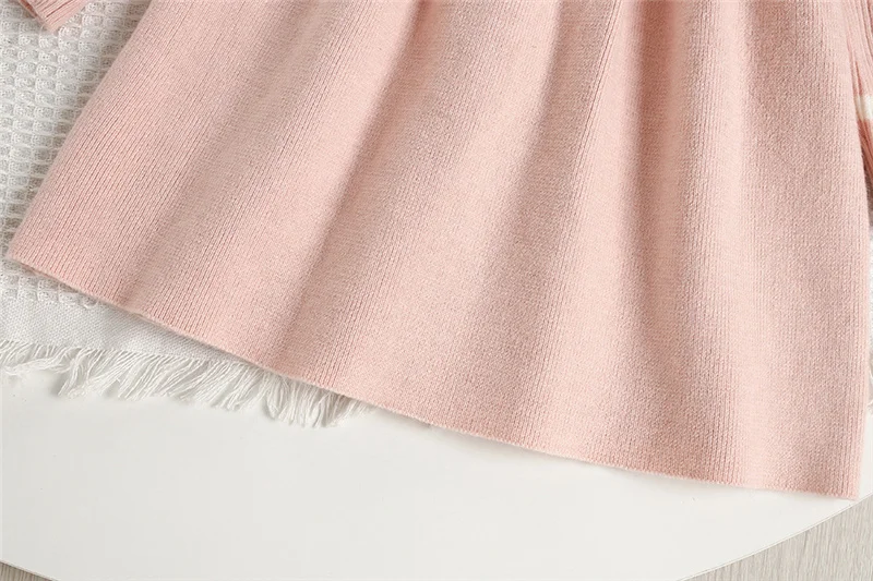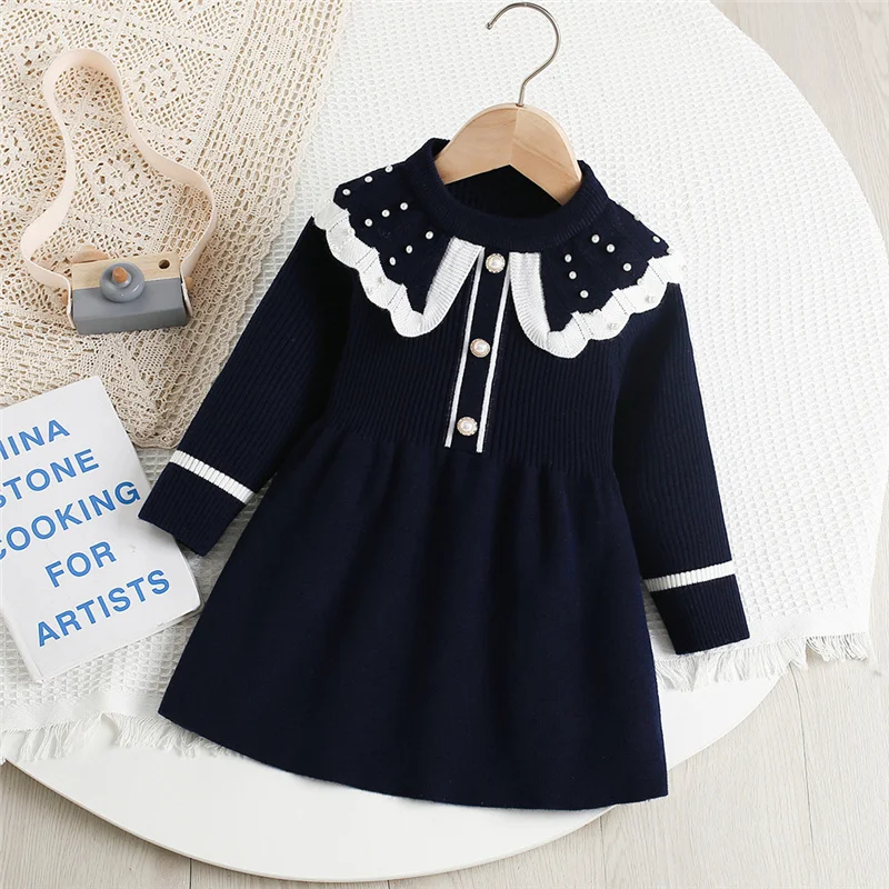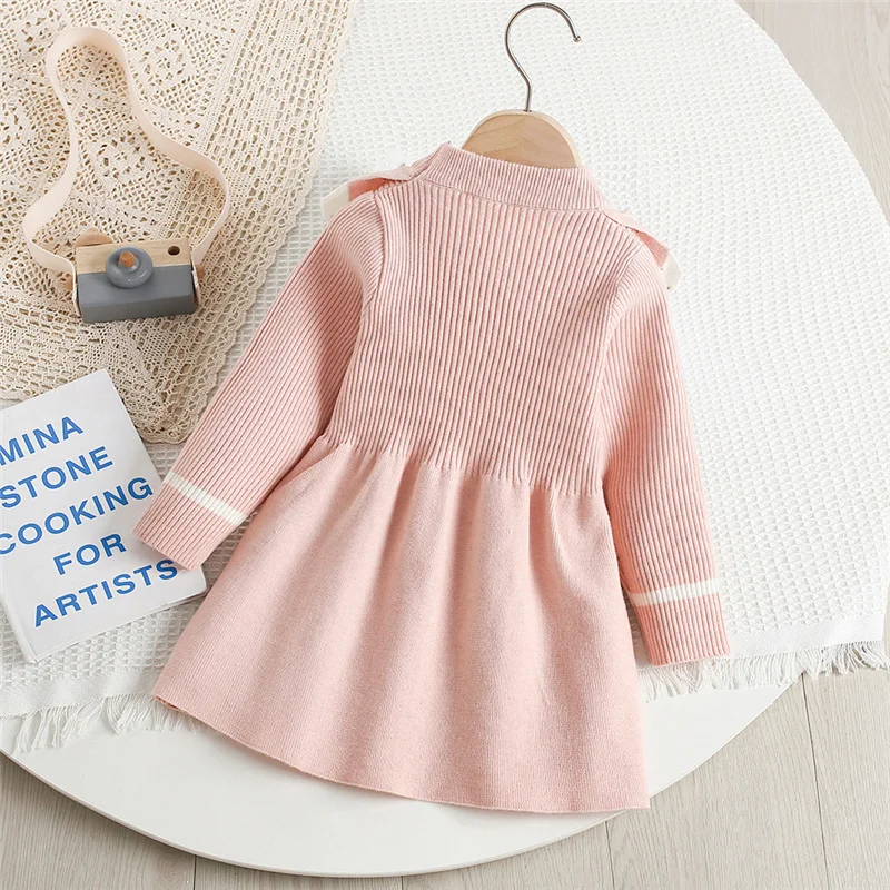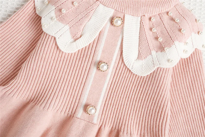 Type: Kids Pearl Turn Down Collar Knitted Dress