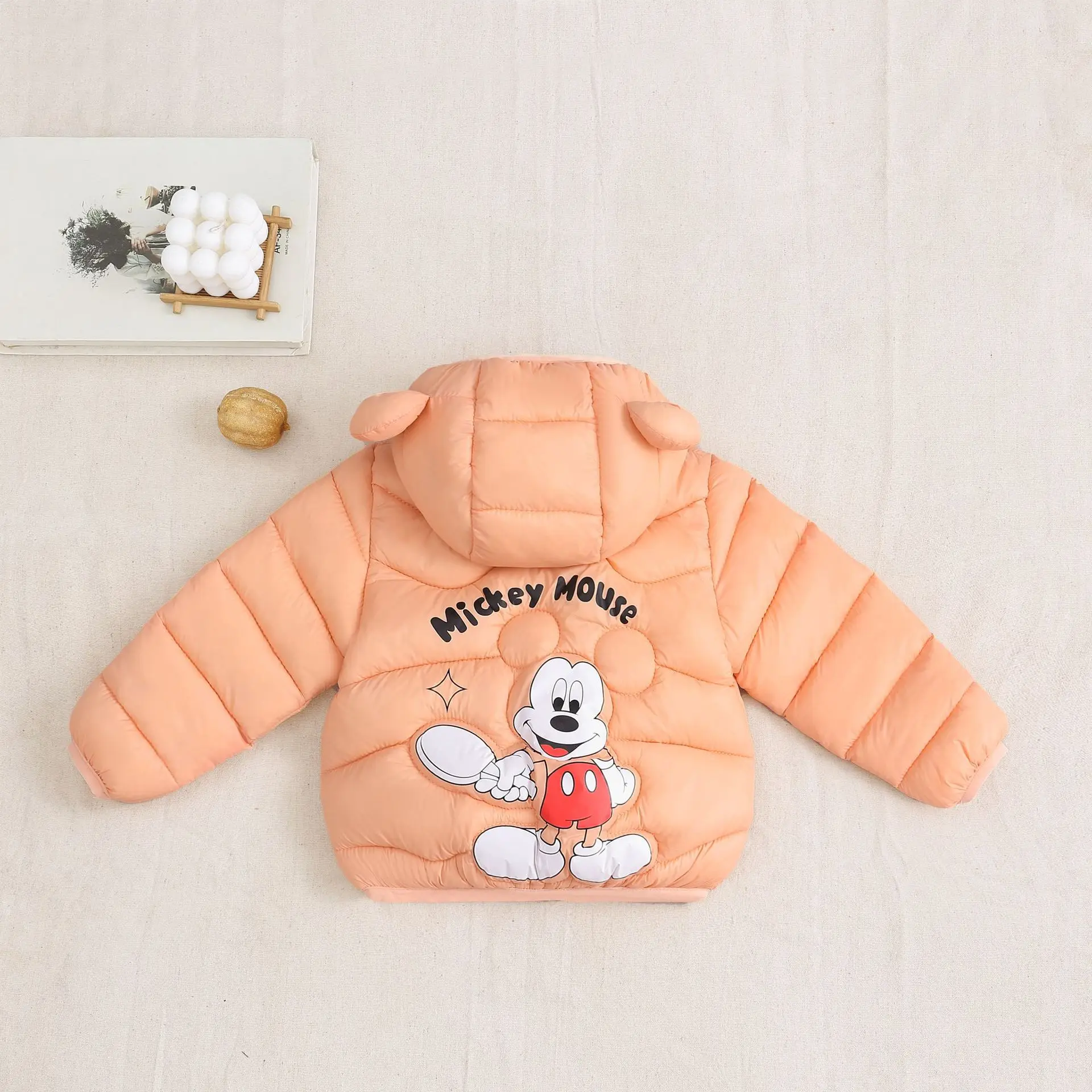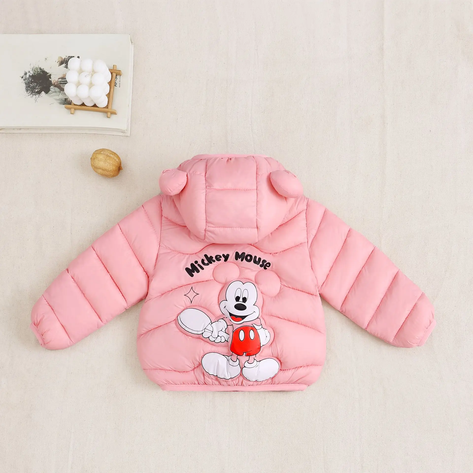 Baby Boys Girls Lightweight Down Jacket 2025 Autumn Winter Kids Cartoon Mickey Mouse Warm Hooded Coats Children Zipper Outerwear