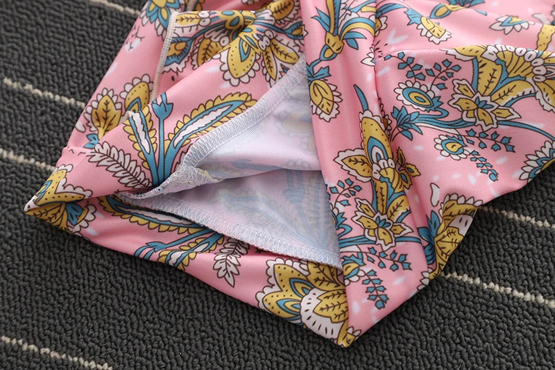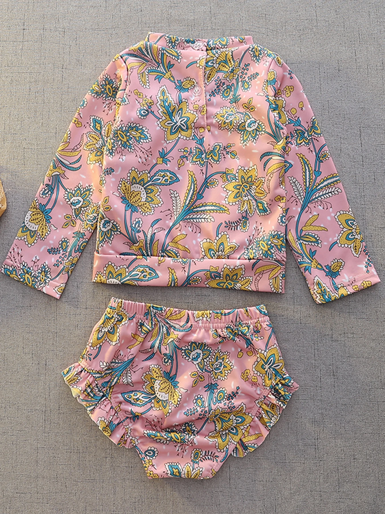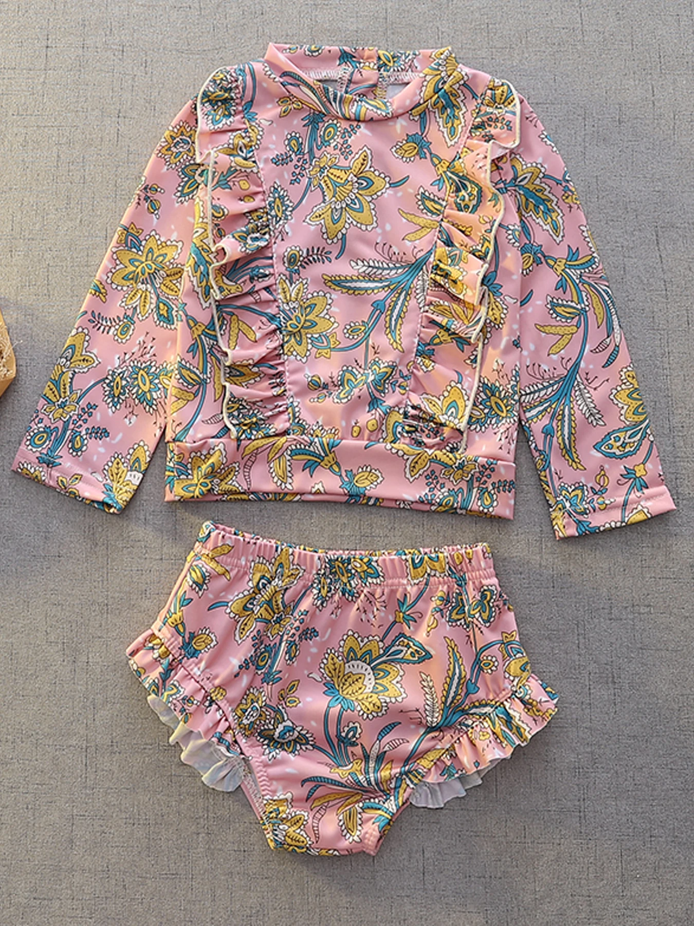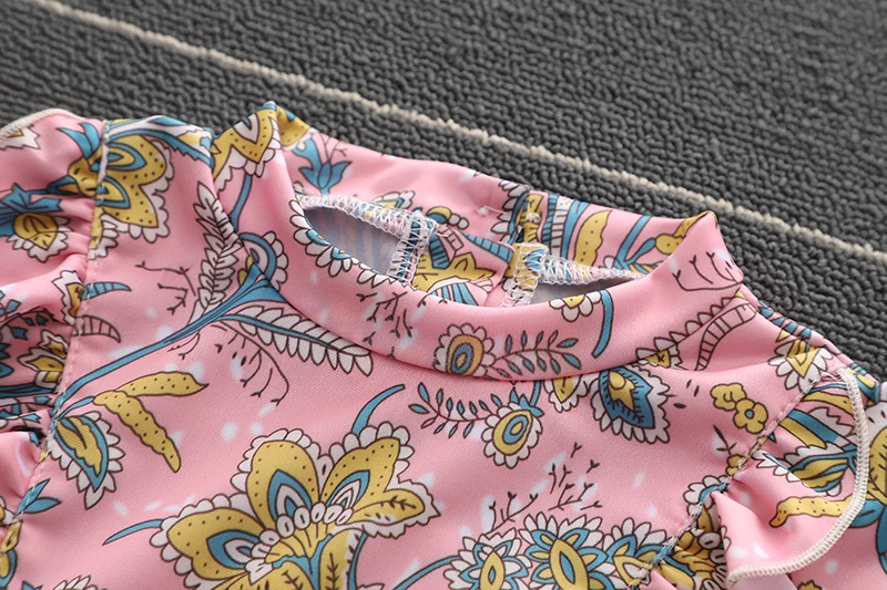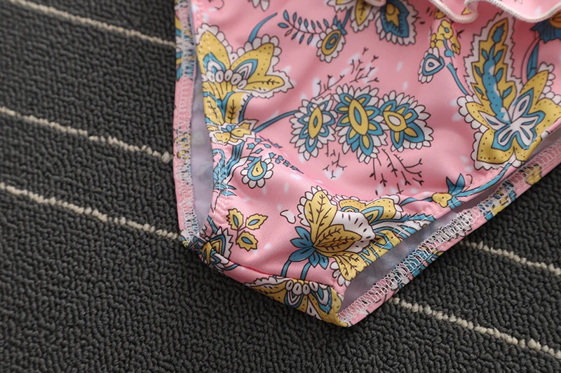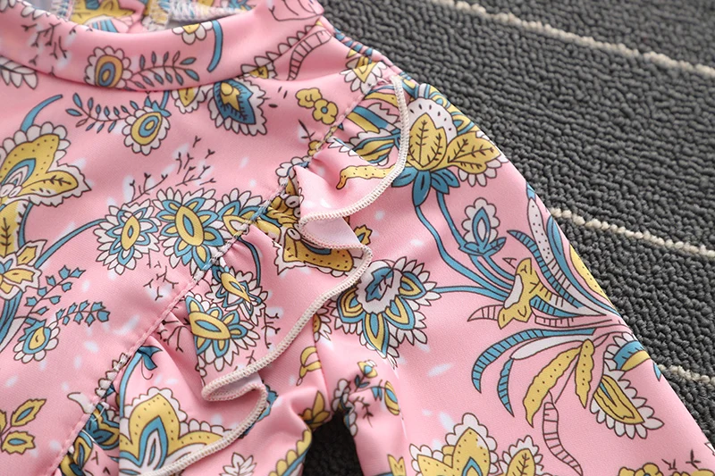 The swimsuit features a beautiful floral pattern, adding a touch of elegance and femininity to your little girl's summer wardrobe.
