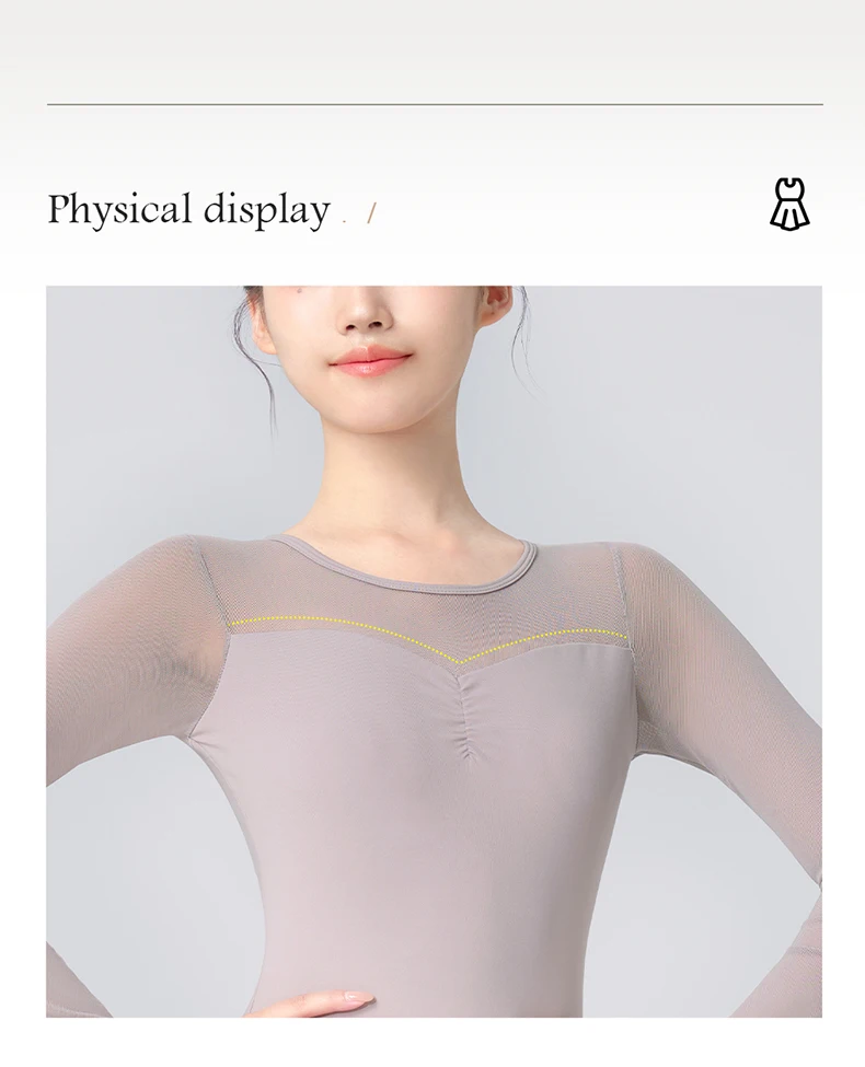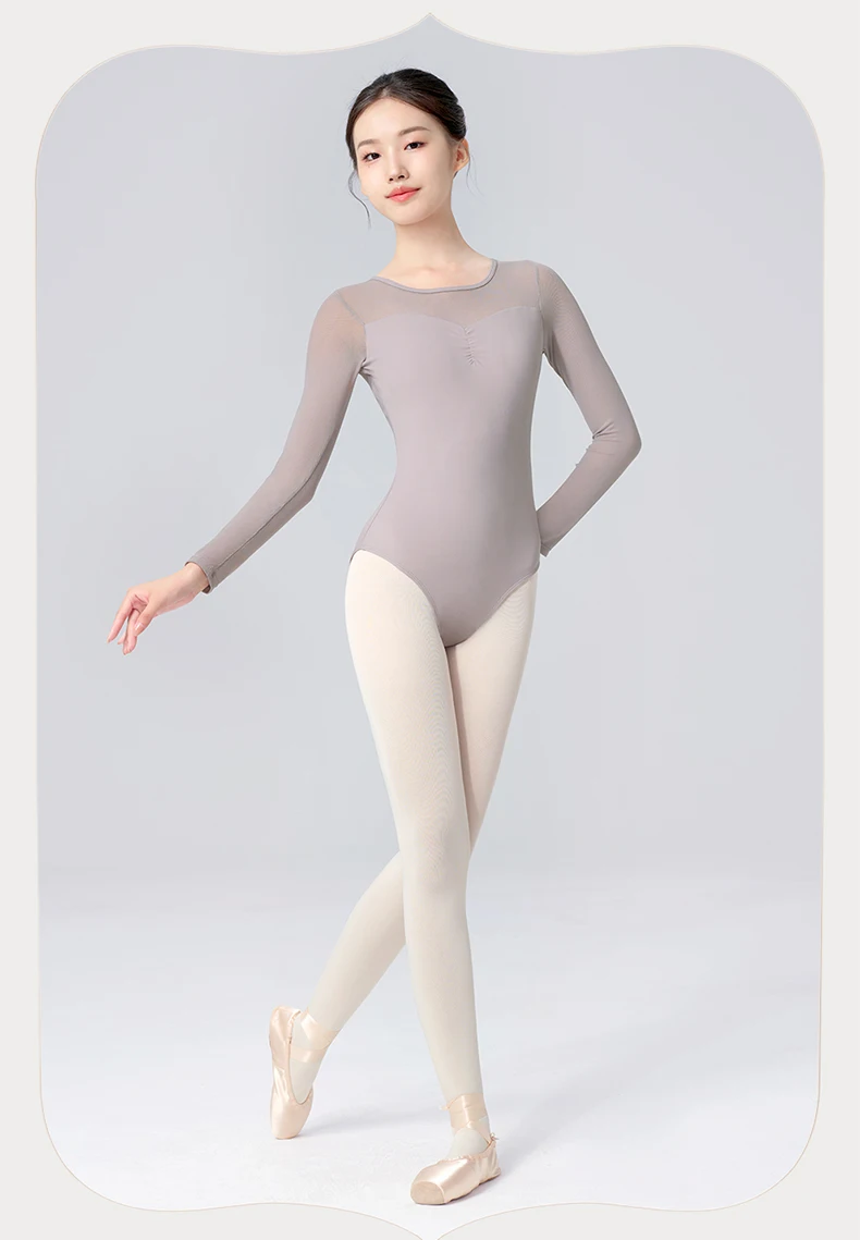 Ballet Leotards for Women Ballerina Mesh Splice Gymnastics Leotards Long Sleeves Dance Leotard Nylon Elegant Dancing Bodysuits