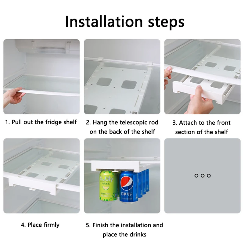 3. Fits 99.99% of fridges. This storage rack is suitable for 99.99% of fridges and the length can be adjusted to suit the glass panel of the fridge. It is a soda storage godsend for your fridge.