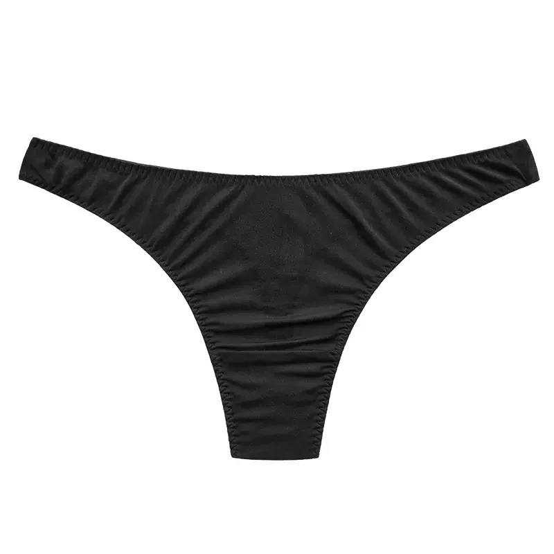 BirdTree, Lining 100%Real Silk Knit Thong, Women Low Rise Thin, Comfortable Breathable T-Back, 2024 Spring Summer New