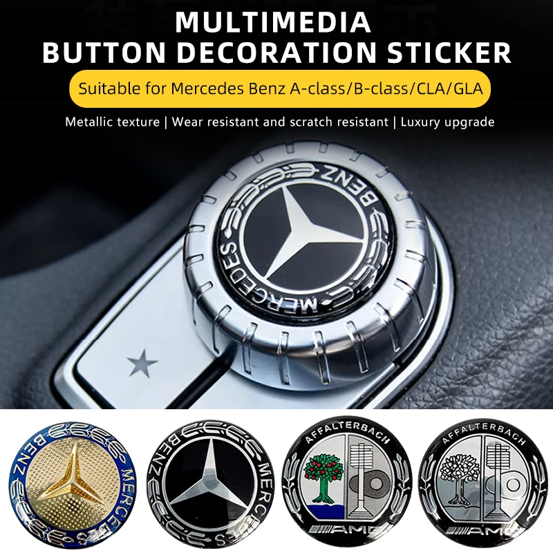Car Multimedia Knob Decorative Stickers For Mercedes-benz AMG Barbosa W205 C300 W203 W206 W108 W124 W126 W140 W168 W169 W176 GLC