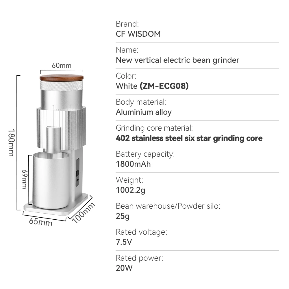 SPECIFICATIONSBattery Included: YesBrand Name: CF WisdomChoice: yesHign-concerned Chemical: NoneMaterial: Stainless SteelOrigin: Mainland ChinaCF WISDOM Portable Electric Coffee Grinder 25g Bean Storage Six-Star Burr Adjust ﷼1,113.16 Regular Price﷼545.45Sale PriceOut of Stock
