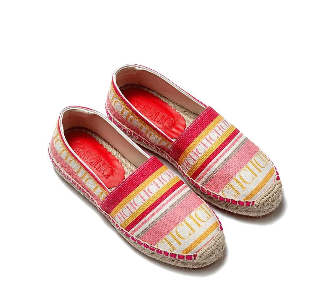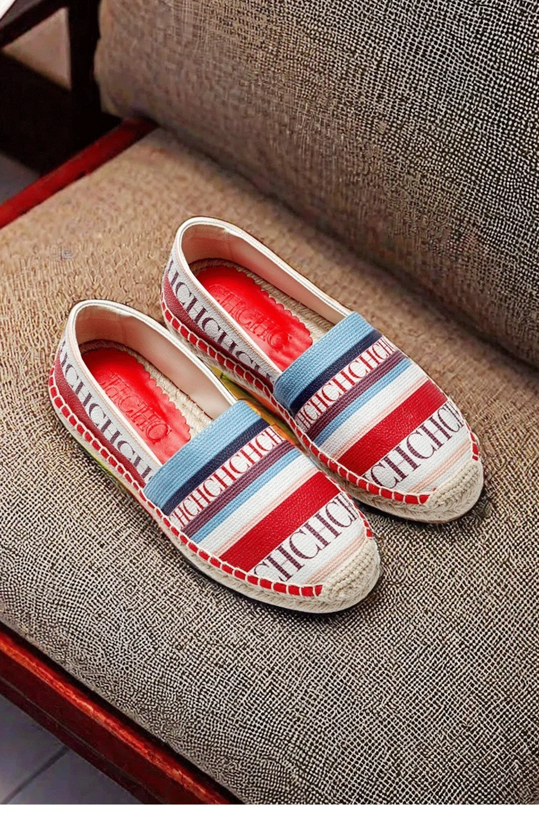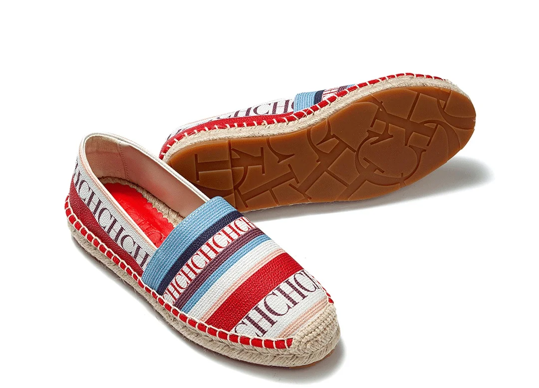 CH Multifunctional Slip-On Loafers Women's Flats, Striped Monogram Print Design, Niche Fashion Style Fisherman's Shoes