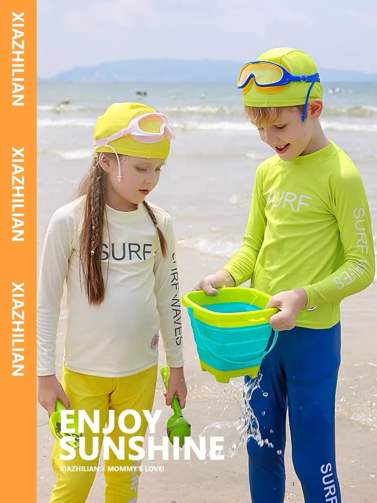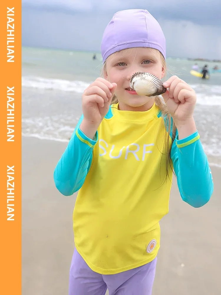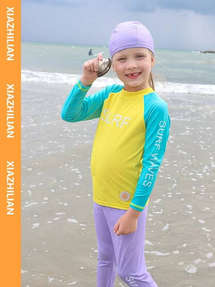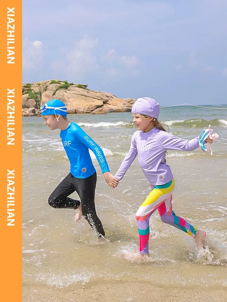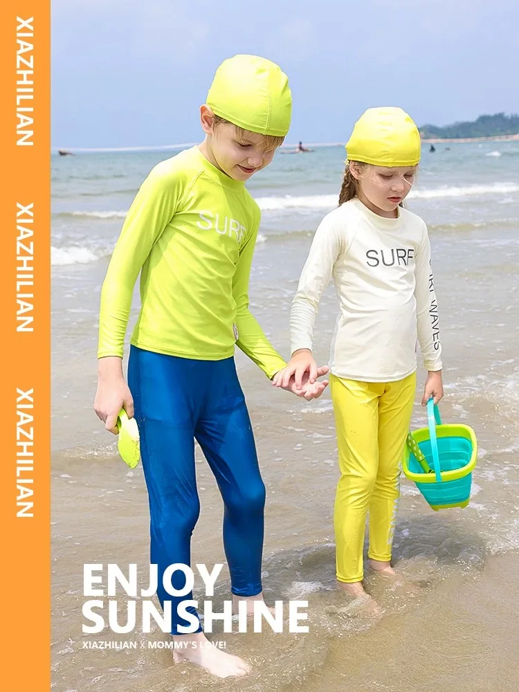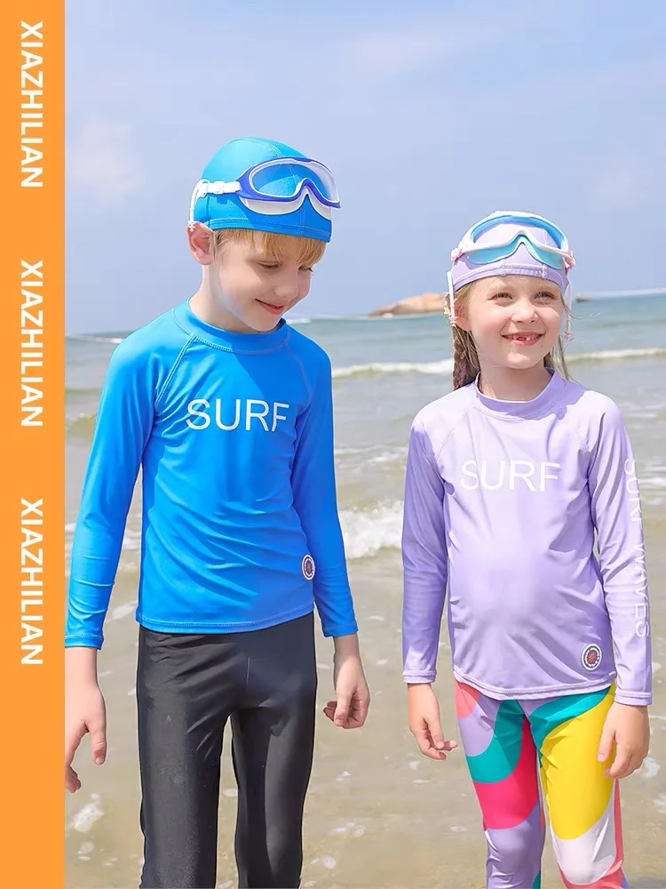 Children's Swimsuit Full Cover Beach Clothes UPF50+ Swimming Suit for Boys Girls Long Sleeve Rash Guard Spa Bathing Surfing Suit