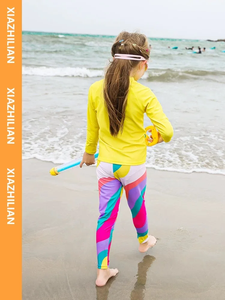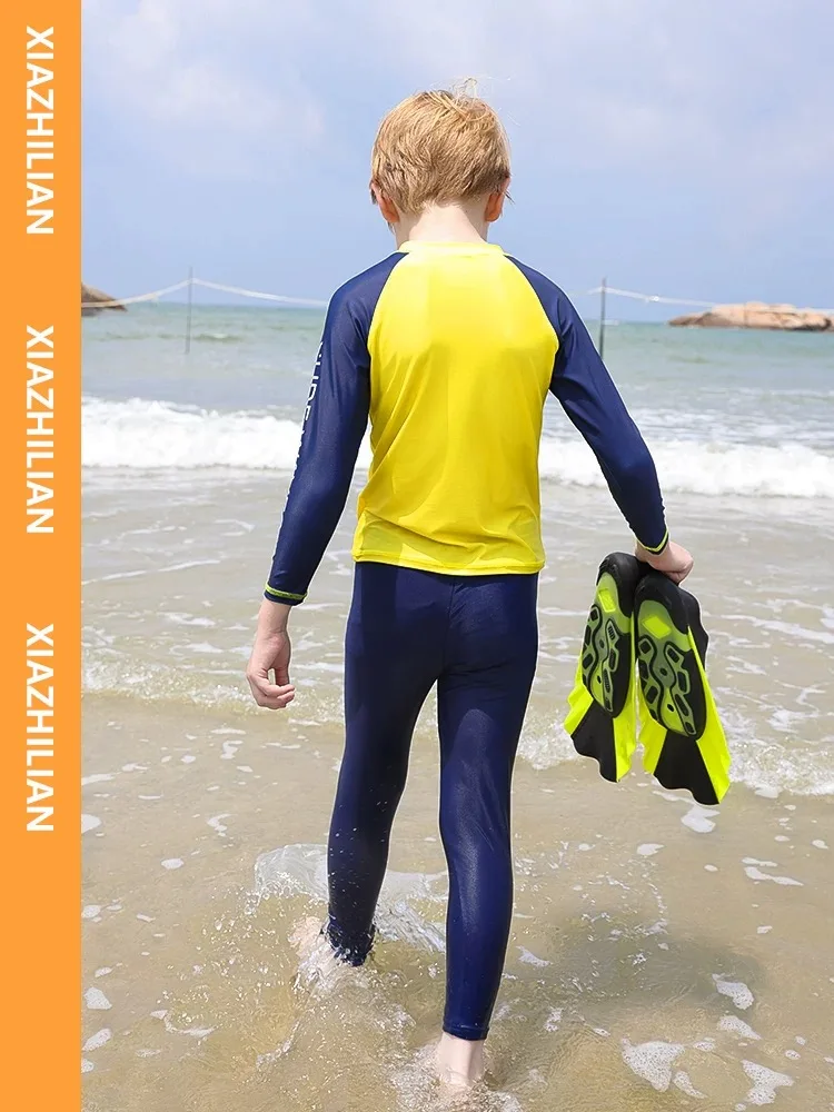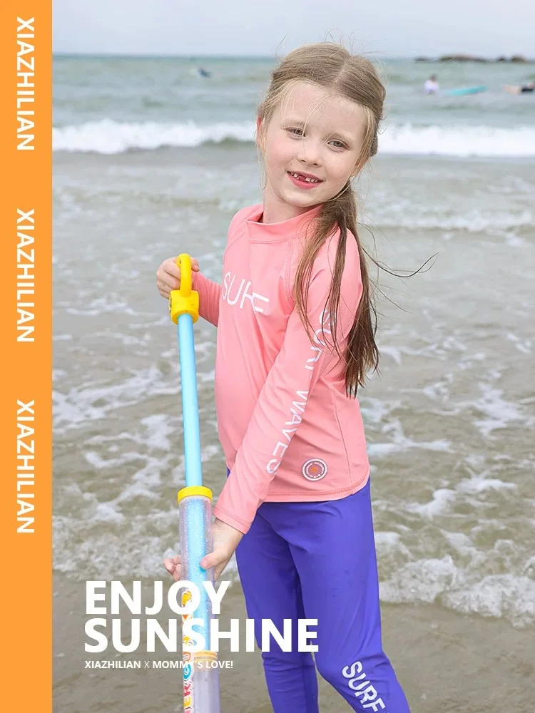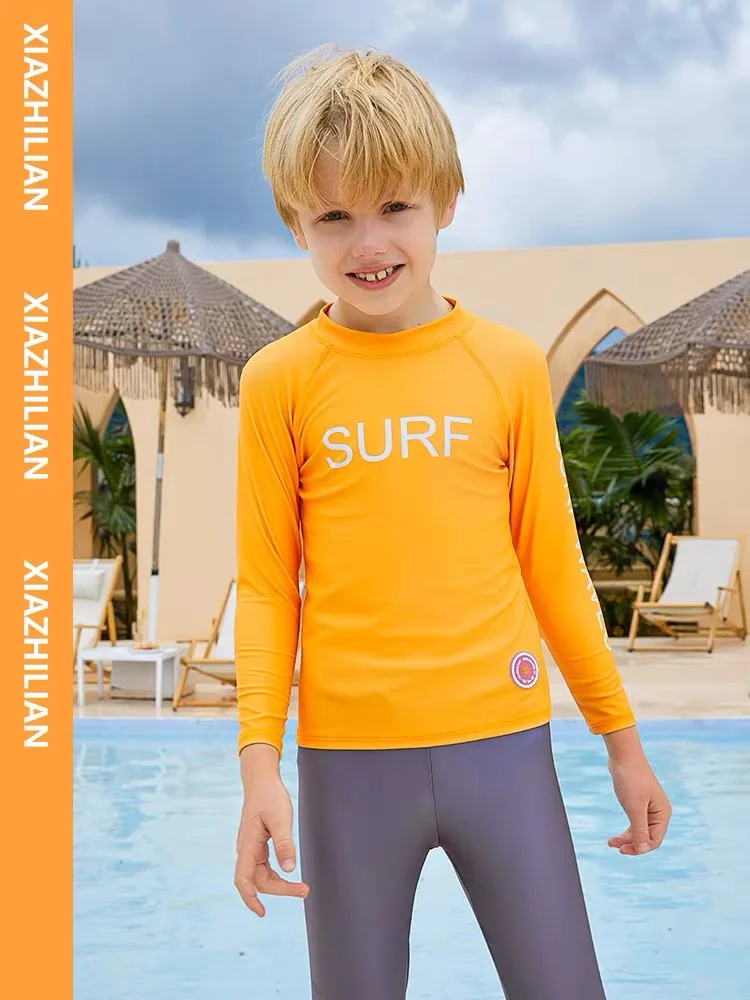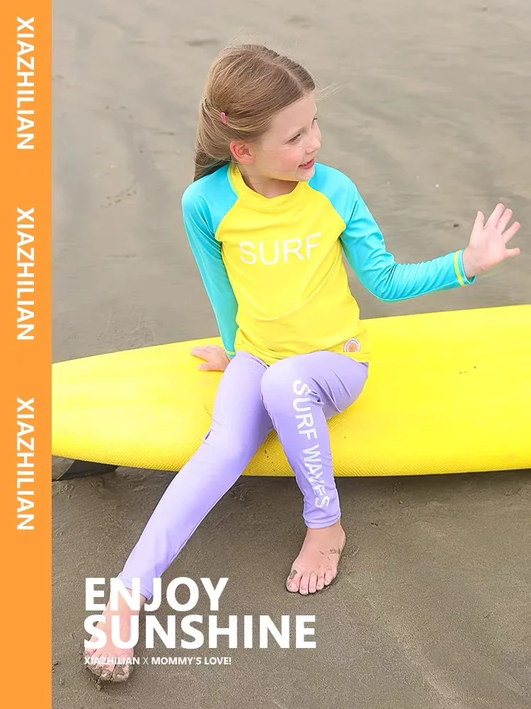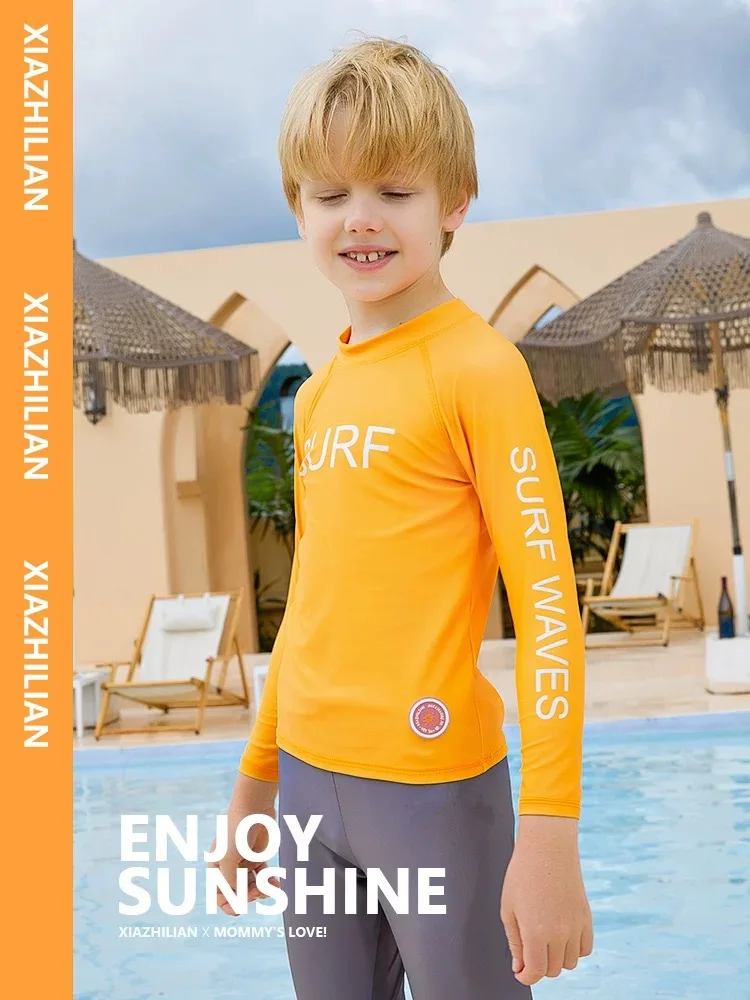 Children's Swimsuit Full Cover Beach Clothes UPF50+ Swimming Suit for Boys Girls Long Sleeve Rash Guard Spa Bathing Surfing Suit