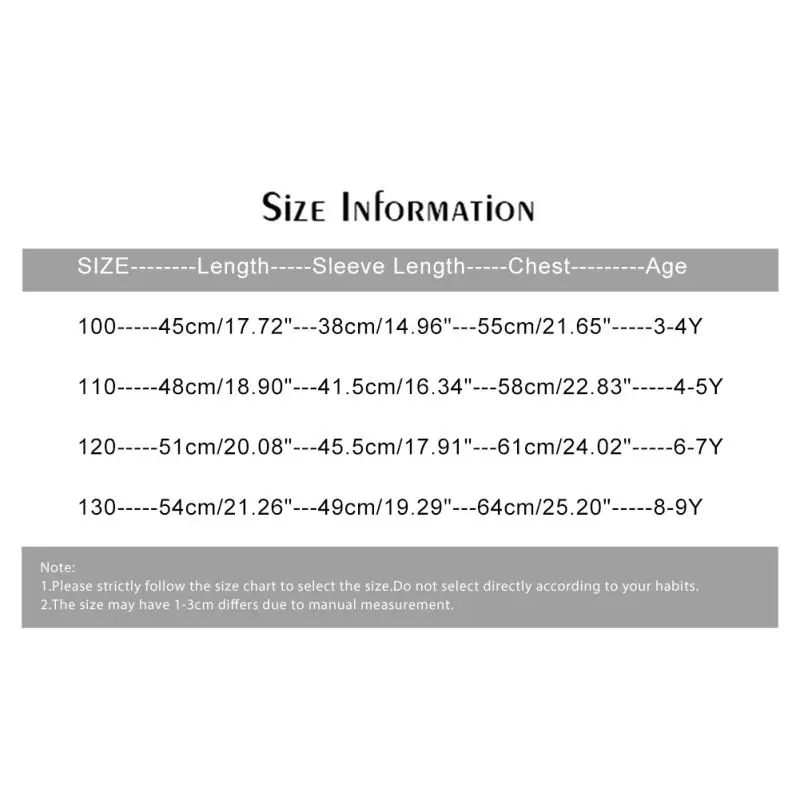 130-----54cm/21.26"---49cm/19.29"---64cm/25.20"-----8-9Y