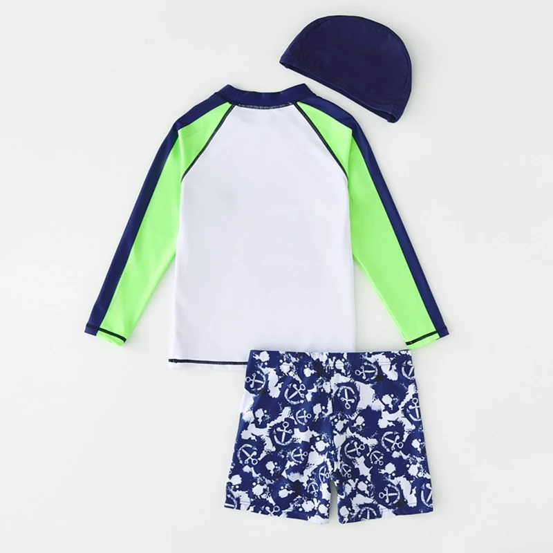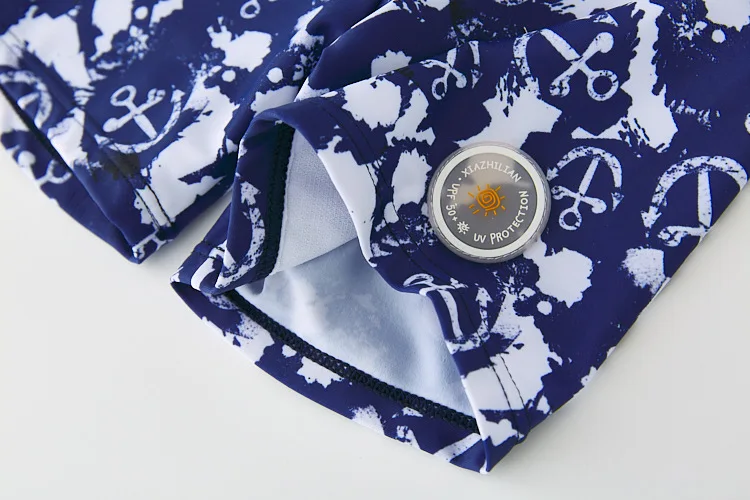 Children Swimwear Long Sleeves Anchor Print Swimsuit Boy UPF50 UV Protection Rash Guard Toddler Teenager Boys Surf Bathing Suit