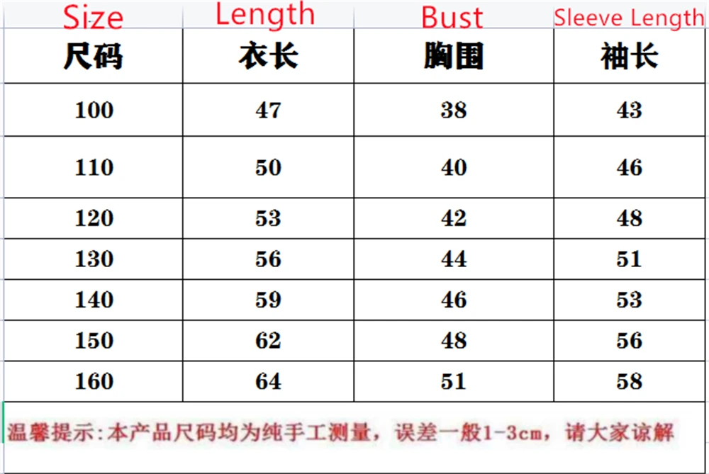 Size 160: Suitable for height 145-150cmReminder: 1. All clothes are in Asian sizes, approximately smaller than the US, EU, UK, and AU2 sizes. It is recommended to choose larger sizes that are relatively overweight. It is recommended to choose larger sizes. Please refer to your child's actual height and size chart before purchasing. According to manual measurements, there is a 2-3% difference. Before purchasing this product, please carefully check the measuring table. 1 inch=2.54 centimeters. Please note that slight color differences are acceptable due to lighting and screen limitations.