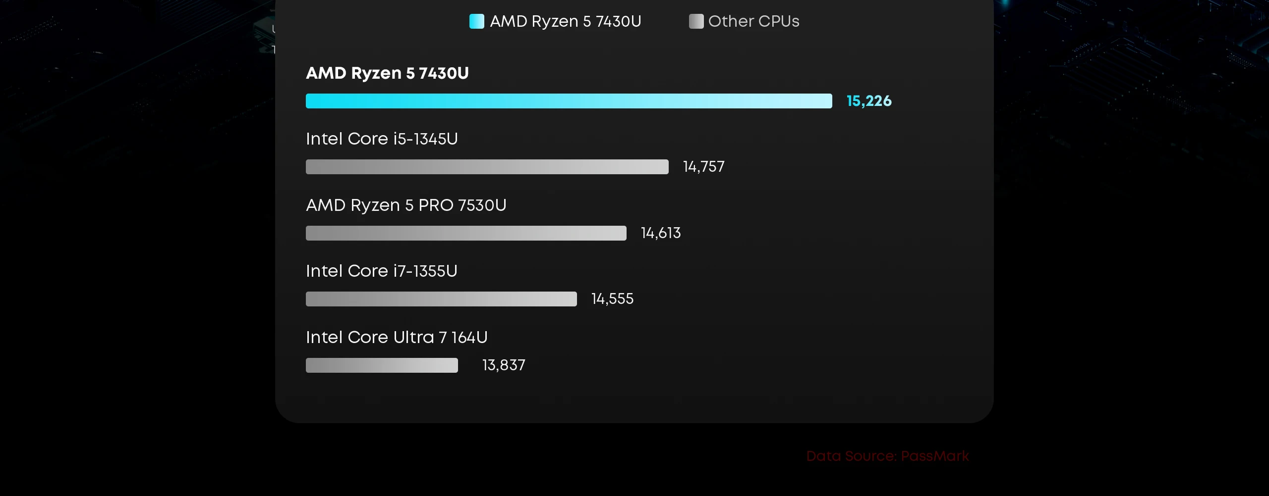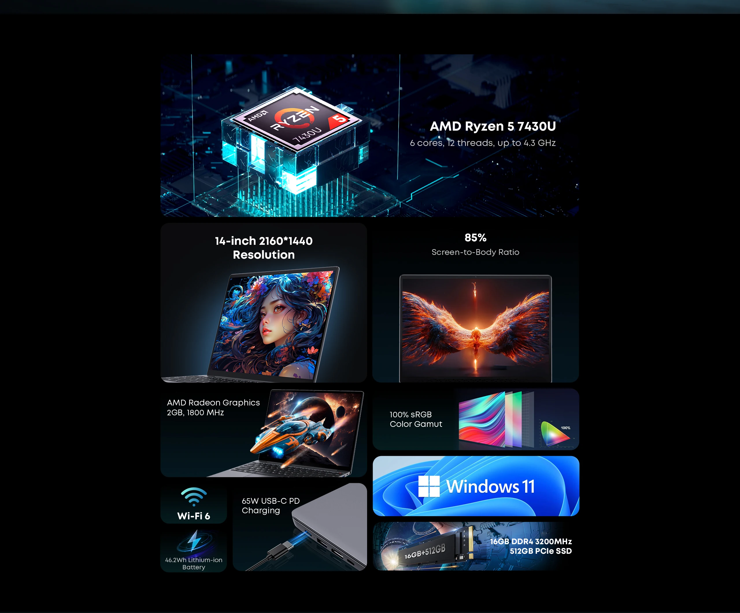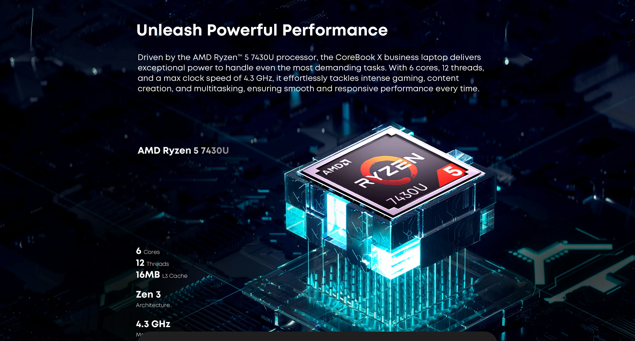 AMD Ryzen 5 7430U: 6 cores, 12 threads, up to 4.3 GHZ