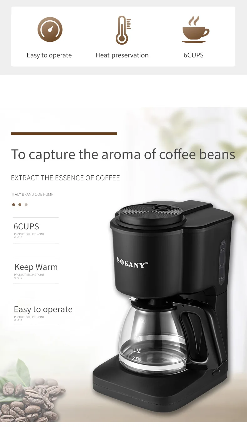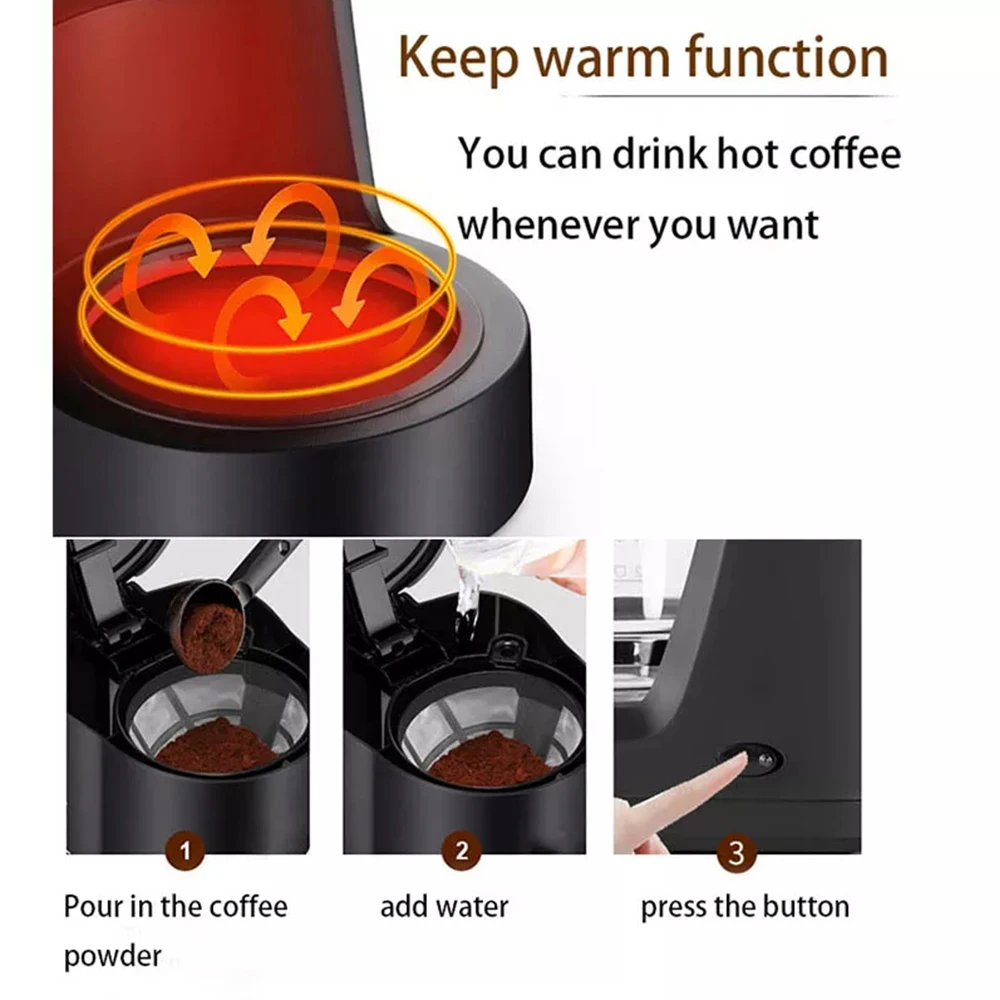 5.The coffee machine has a heat preservation function and is large-capacity, which can make 6 cups of coffee suitable for family or parties.
