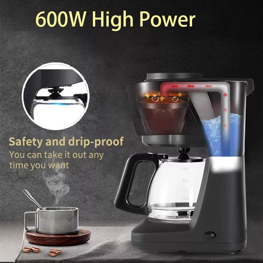 110V/220V Coffee Maker Machine 600W Automatic Drip Coffee Maker 6 Cup Tea Multifunction Electric Household Coffee Machine