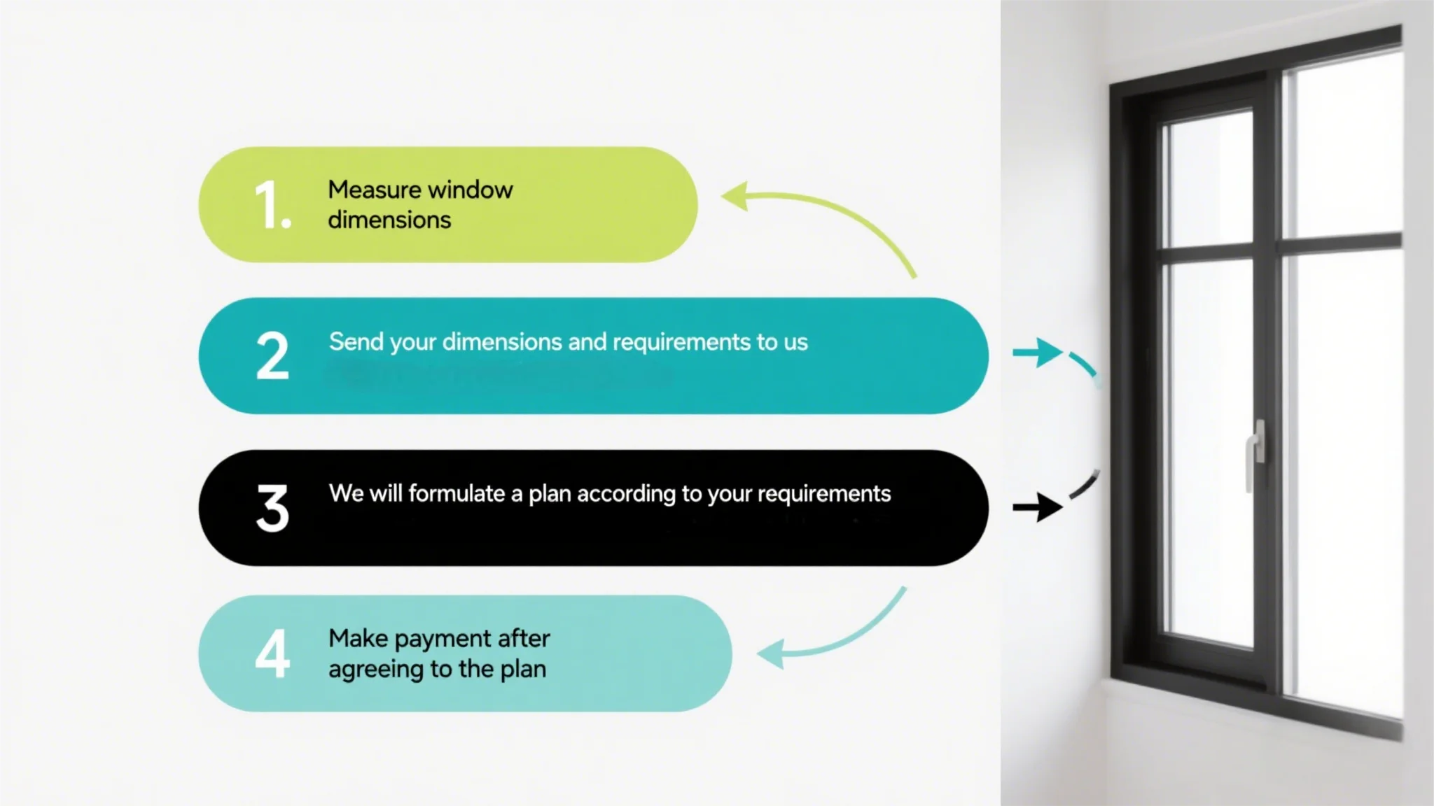 Blind Outside:1) Blinds Width: Window Width+100mm2) Blinds Height : Window Height+200mm