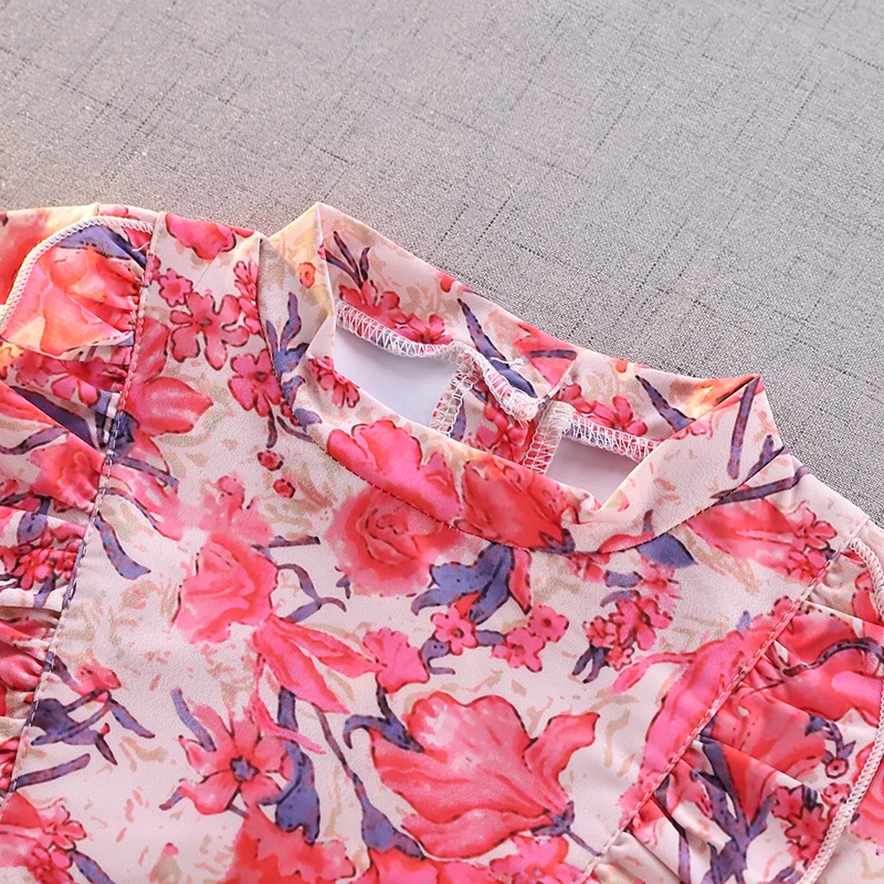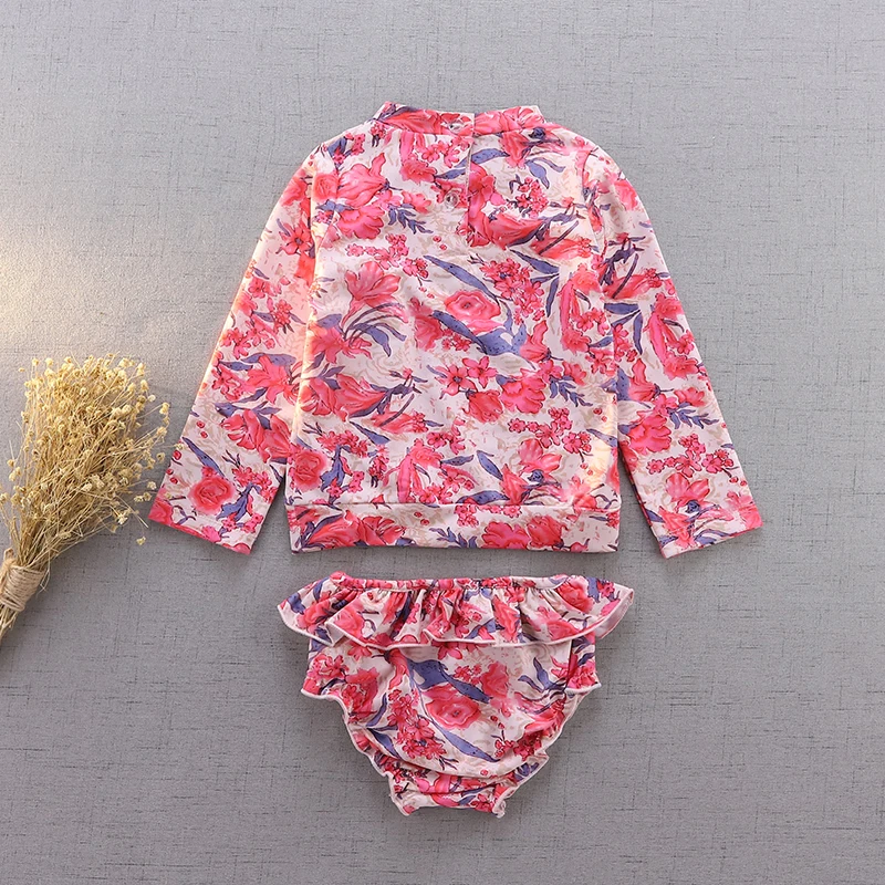 2-piece cute girls floral swimsuit set, long-sleeved top + briefs, comfortable and fashionable, suitable for seaside vacation