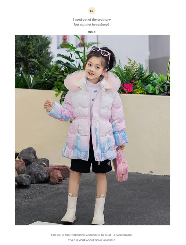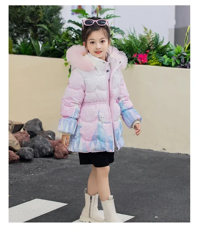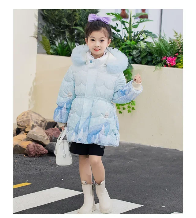 Disney Frozen Elsa Kids Down Jacket 2025 New Winter Princess Hooded Parka -20℃ Warm for Girls 4-8Y Windproof Thick Cotton Coat