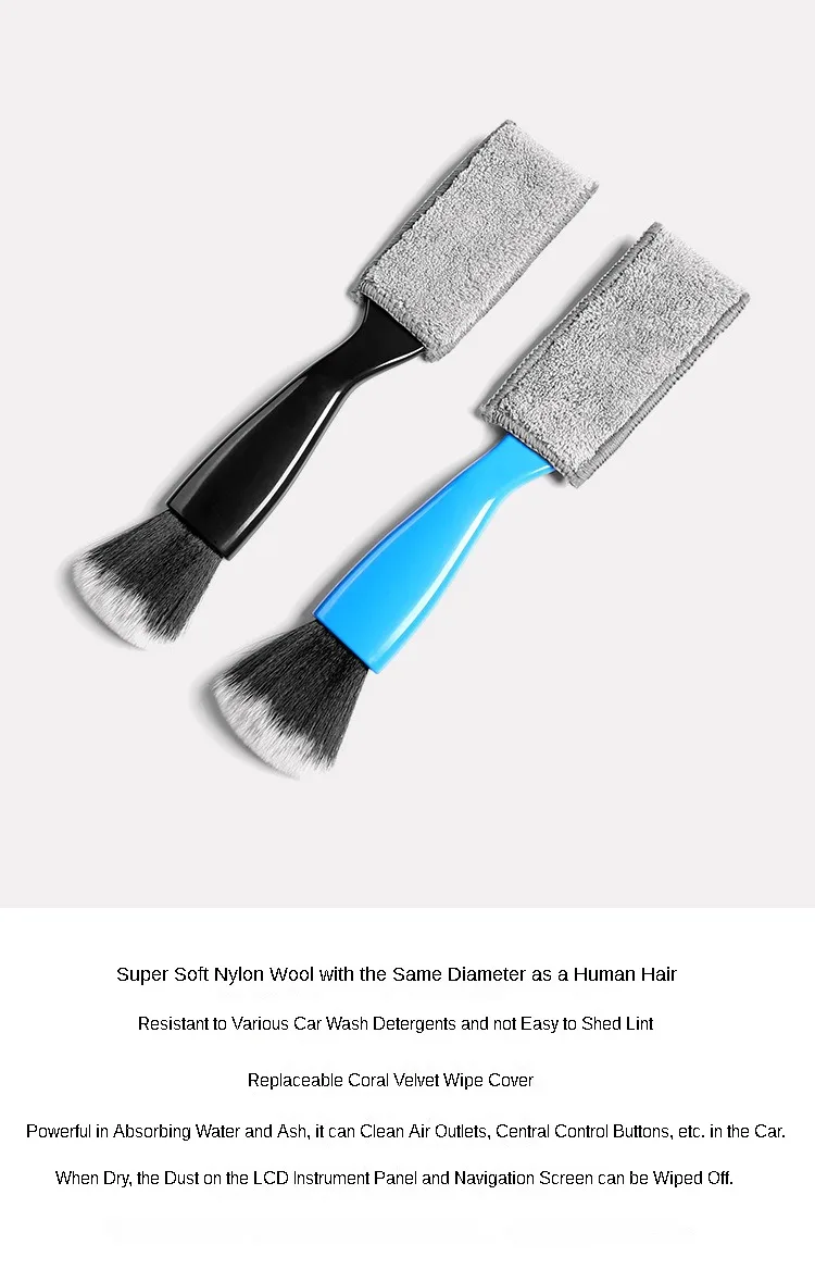 ��Material: This car brush is made of ABS, coral velvet, nylon for gentle cleaning. Even after repeated use, the detailing brush is durable, no bad smell. The detailing brush great for dry and wet use.
