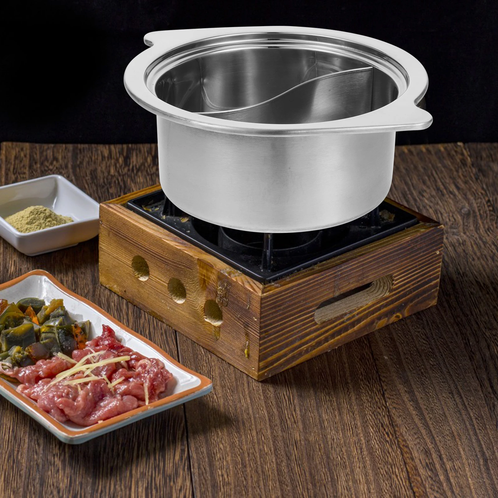 This product is a hot pot container, made of premium stainless steel materials, high-quality and . Stainless steel material is not easy to rust. Suitable for family or friends gathering. This is a very practical and cookware. Multi-purpose Pot