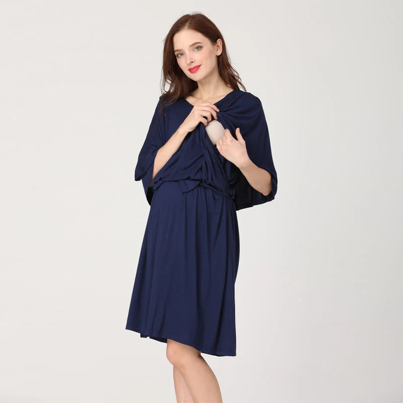 1).Descriptions:Emotion Moms Maternity Dresses Invisible Breastfeeding Cloak Dress Loose Maternity Cape Dress Soft Stretch Elegant Nursing Clothes. Material: 95% modal, 5% spandex.2). Size available: S&M&L&XL.3)Colors: grey green, dark blue, violet.4). MOQ: 1pcs.5) Feature:ECO-Friendly fabric, anti-bacterial mite, Easy for nursing,Fashion Style, high elasticity, softness, comfortable, breathable Sweat-absorbent, wearing Relax.Your OEM Designs are welcomed.6). Ship date: 24 hours after order is confirmed.