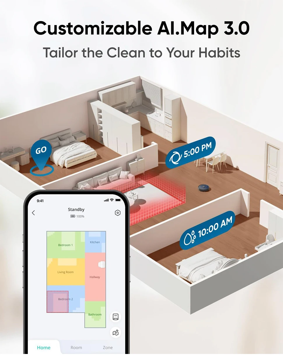 Use the app to customize cleaning scenarios to customize your cleaning routine to your needs.